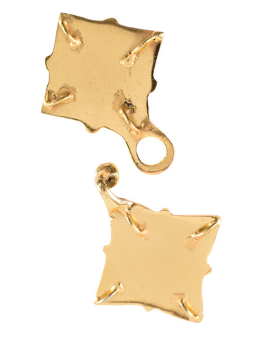 Este broche de peregrino medieval tiene una medida de 4 x 3 cm y cuenta con un resistente pasador en la parte posterior para sujetarlo a la ropa. Está hecho de bronce de alta calidad, lo que le da un toque auténtico y resistente.