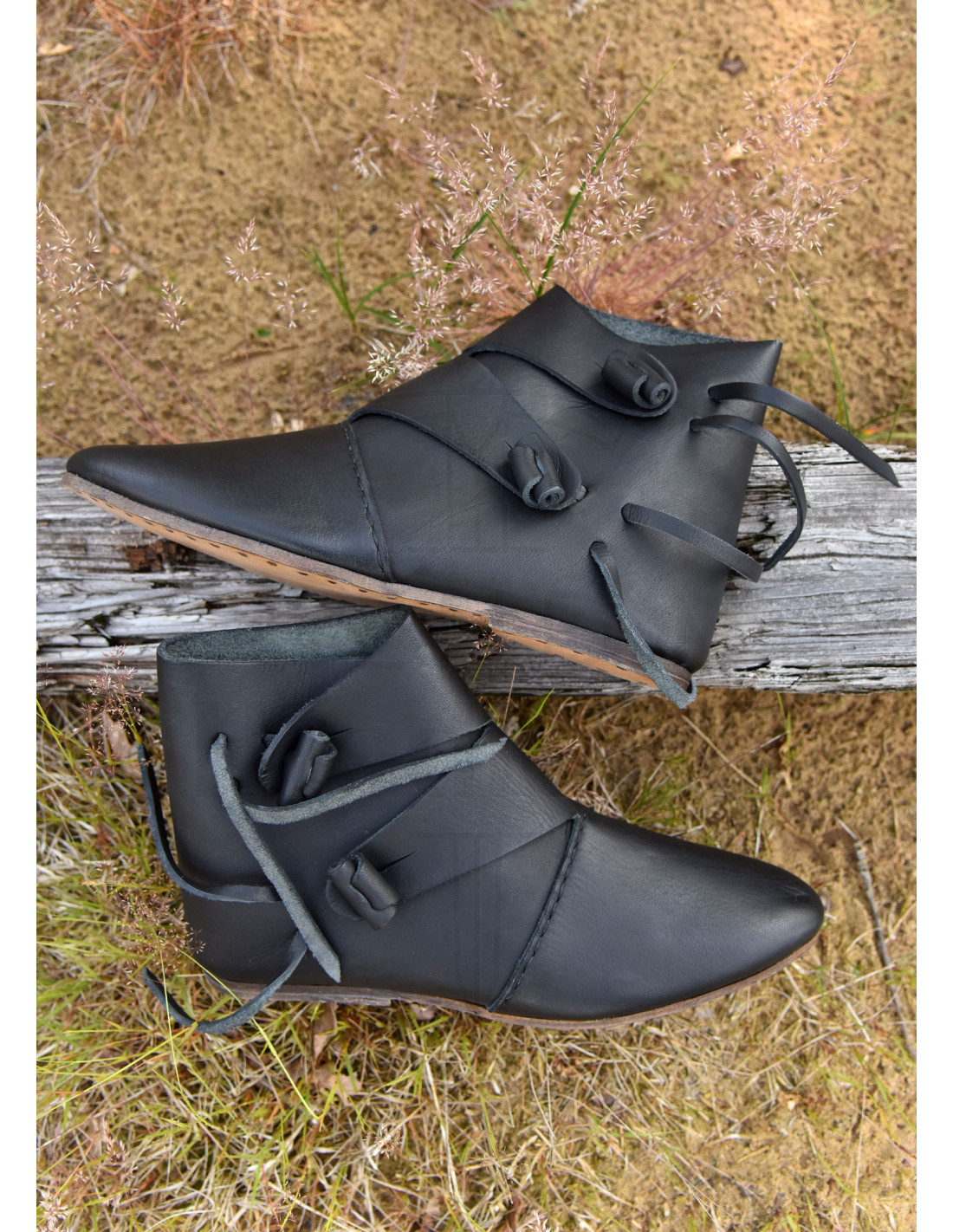 Estas botas no solo rememoran una época llena de aventuras y conquistas, sino que también reflejan la autenticidad de un periodo en el que la resistencia y el detalle eran fundamentales. Aunque inspiradas en el siglo IX y X, están pensadas para quienes disfrutan de calzado con un carácter único, ideal para destacar con personalidad en cualquier escenario.