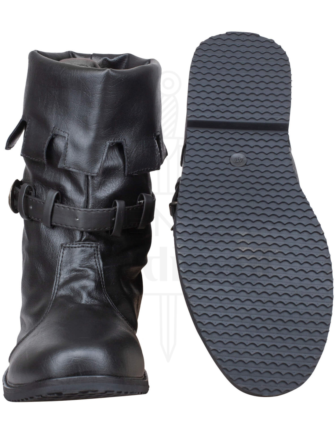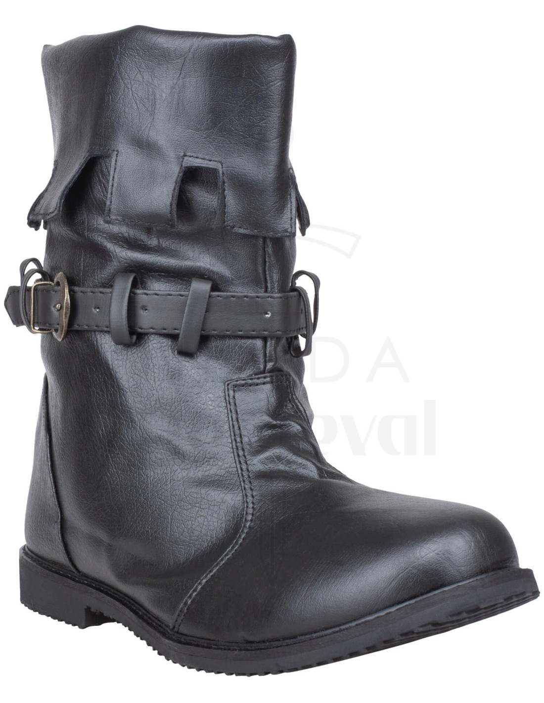 ¿Quieres lucir un estilo auténticamente medieval pero con un toque moderno? Estas botas de cuero en color negro son la elección perfecta para dar ese paso con confianza y carácter. Confeccionadas con materiales de alta calidad, ofrecen una protección eficaz contra la humedad, ideal para esos días en los que el clima cambia repentinamente. La suela, firmemente pegada y de goma, garantiza un apoyo seguro en todo momento, permitiéndote caminar con estabilidad y comodidad.