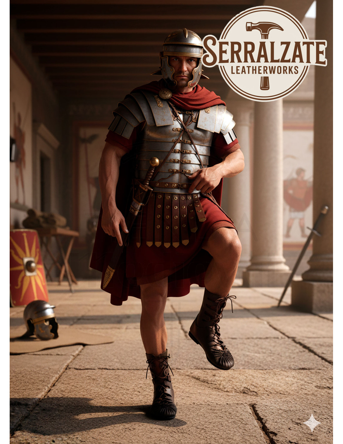 Revive la historia y el espíritu del antiguo Imperio Romano con nuestras auténticas cáligas, las sandalias de cuero que calzaban los legendarios legionarios. Fabricadas artesanalmente en España con cuero de la mejor calidad, estas réplicas están diseñadas para ofrecerte la combinación perfecta de historia, durabilidad y confort.