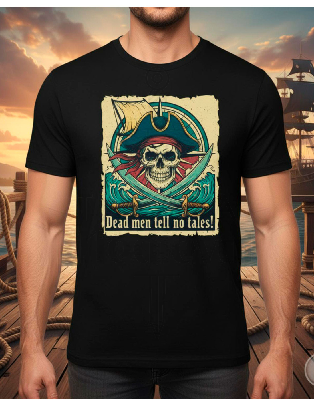 ¿Buscas una camiseta que combine estilo pirata con un toque de rebeldía? Esta camiseta negra con el lema 'Dead Men tell no tales' te permite expresar tu actitud con facilidad. Fabricada en algodón 100% de alta calidad, su material de punto liso ofrece una sensación suave y cómoda en cada uso, perfecta para tus looks casuales o para destacar en reuniones temáticas.