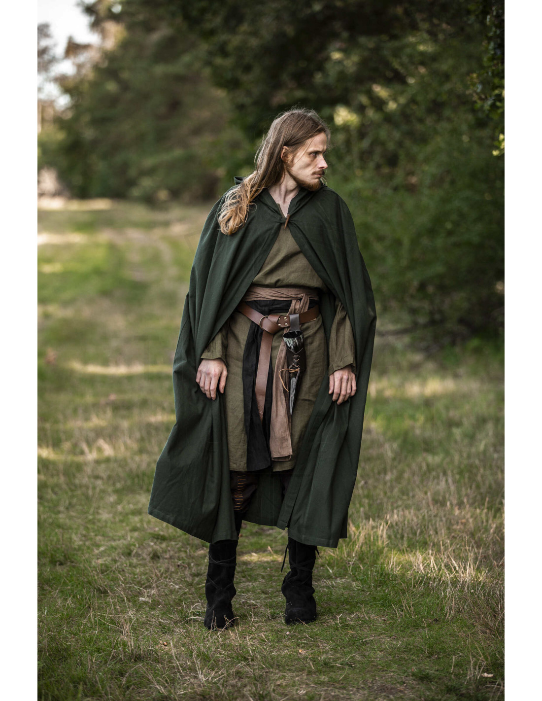 La Capa Johannes envuelve tu figura con una presencia elegante y práctica, gracias a una capucha pensada para cubrir y enmarcar el rostro, aportando una sensación de misterio y protección contra el frío. Su caída fluida acompaña el movimiento, creando una silueta majestuosa que mejora cualquier atuendo, desde un look de aventura en eventos hasta un estilo urbano con personalidad.