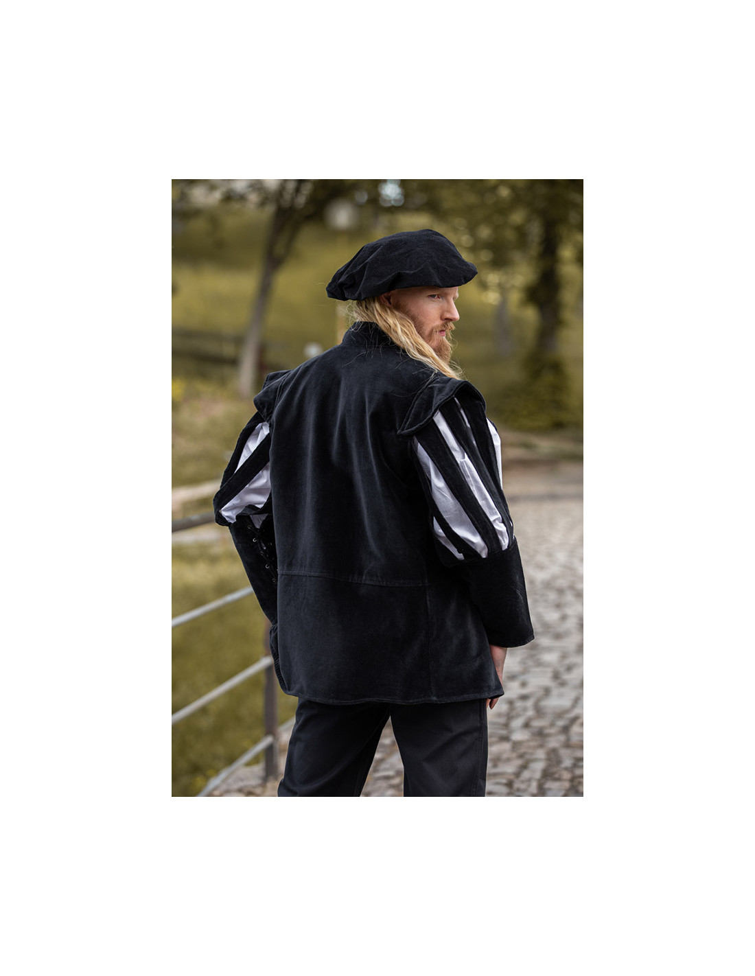 Esta chaqueta renacentista es fabricada en Alemania por la reconocida marca Leonardo Carbone, sinónimo de excelencia y prestigio en el mundo de la moda renacentista. Con su experiencia y dedicación, garantizan un producto de calidad inigualable.