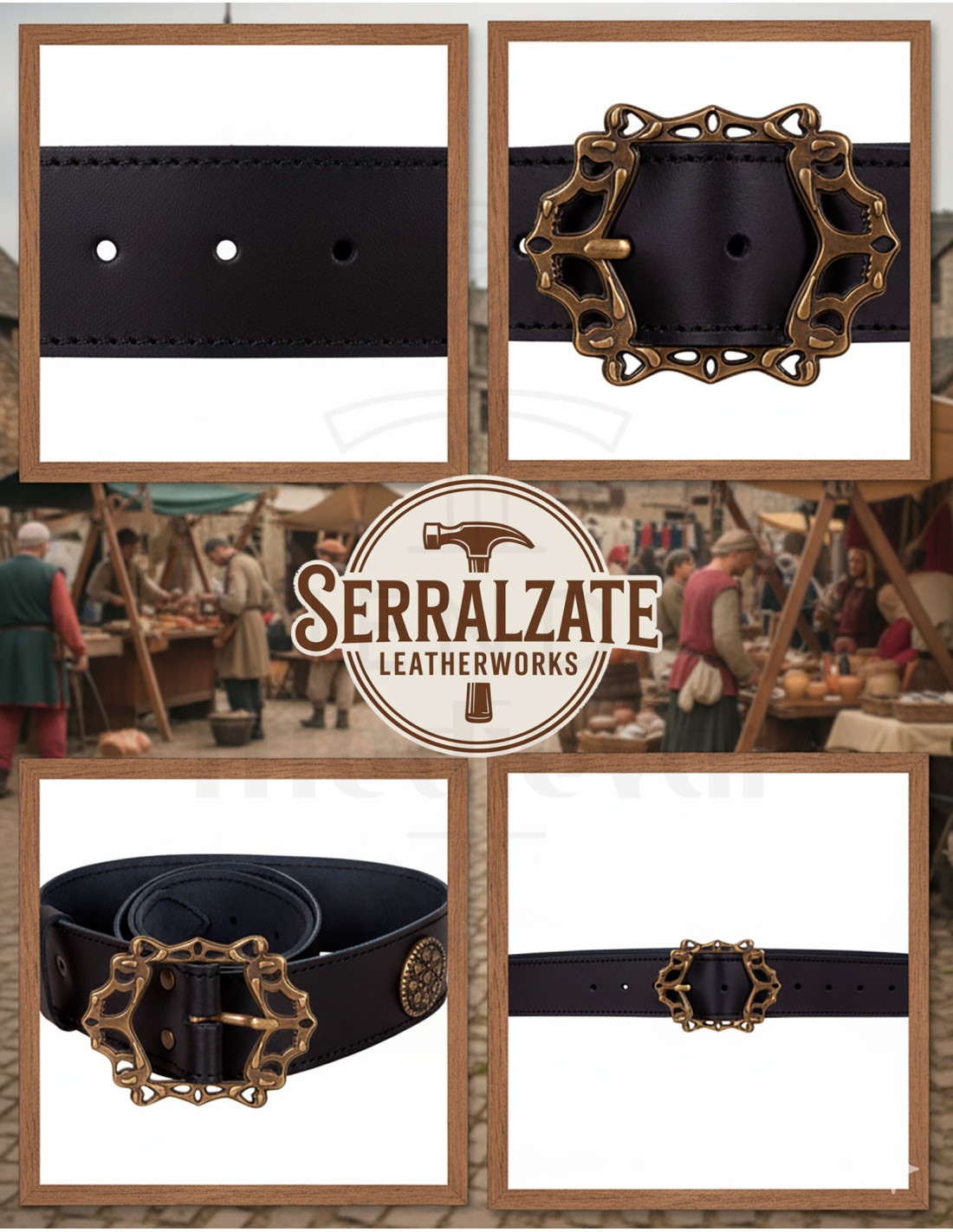 Transforma tu look con el Cinturón Medieval Basilio - Negro de Serralzate LeatherWorks, una auténtica joya artesanal diseñada para destacar en cualquier situación. Este cinturón de cuero negro, elaborado a mano en España, une durabilidad y estilo con un acabado impecable. La hebilla, fabricada en zamak, presenta detalles ornamentados que evocan épocas históricas, perfecta para recreaciones medievales, atuendos de piratas audaces o aventureros intrépidos.