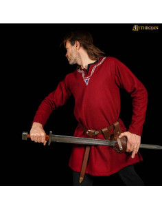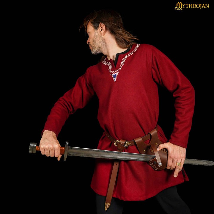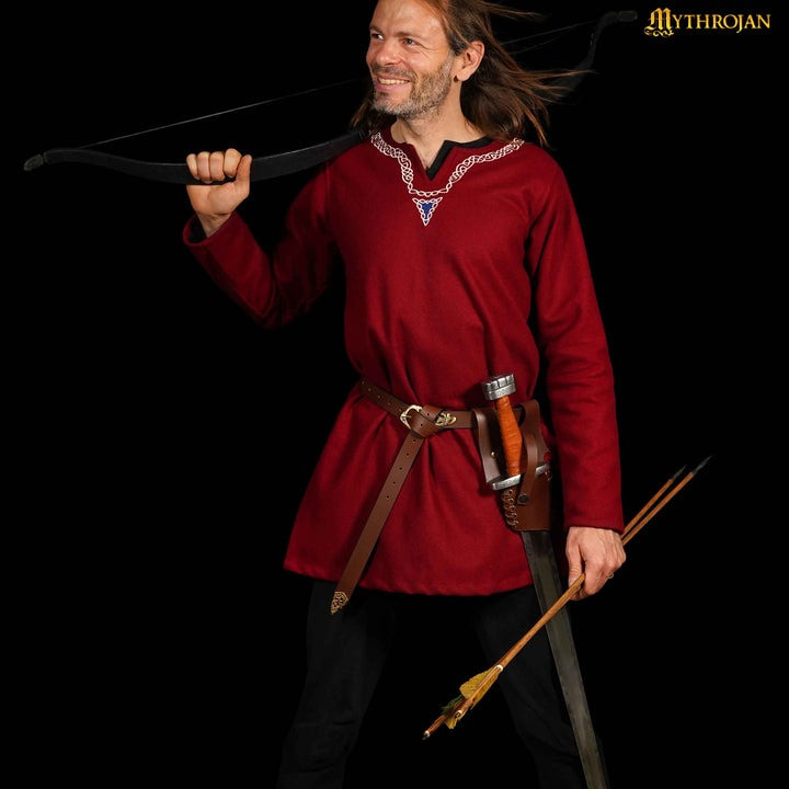 Correa de cuero celta artesanal para jarra medieval, verde botella