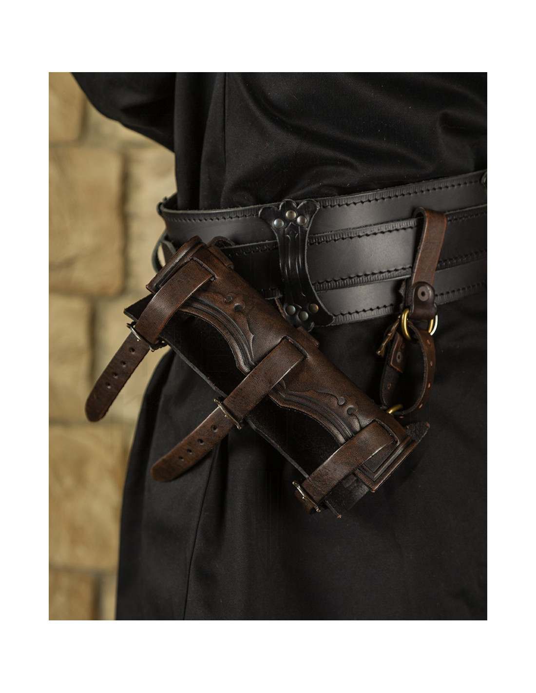 Este accesorio no solo cumple con la función de protección y portabilidad, sino que también expresa un carácter histórico y artesanal que cautiva a primera vista. Perfecta para cosplayers, coleccionistas o amantes del mundo medieval, esta funda de cuero con acabado en relieve y el clásico tono marrón será la pieza que realce tu atuendo y destaque tu pasión por la estética de la época. La calidad y el diseño artesanal convierten cada unidad en una adquisición duradera y llena de carácter.