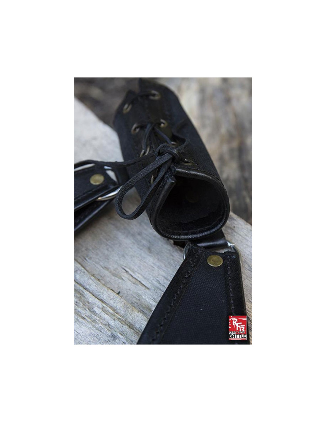 Con una longitud de 13 cm, este tahalí está abierto en ambos extremos, lo que te permite ajustar el cordón de cuero para adaptarlo a tu arma de hasta 5 cm de diámetro. Ya sea que lleves una espada, una daga o cualquier otra arma, este tahalí se adaptará perfectamente a tus necesidades.