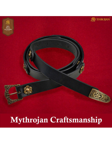 Perfecto para quienes desean comprar Cinturón vikingo en cuero negro, hebilla adornos en latón y estrenar un accesorio que habla de carácter y buen gusto, tanto en reproducciones históricas como en looks modernos. Cada pieza es una declaración de estilo que convierte lo cotidiano en memorable.