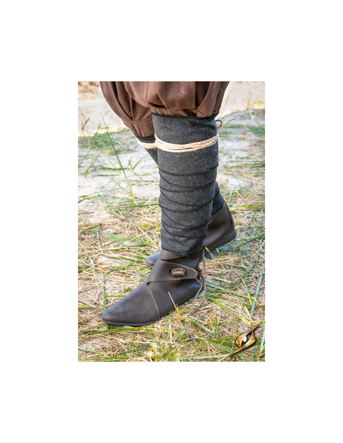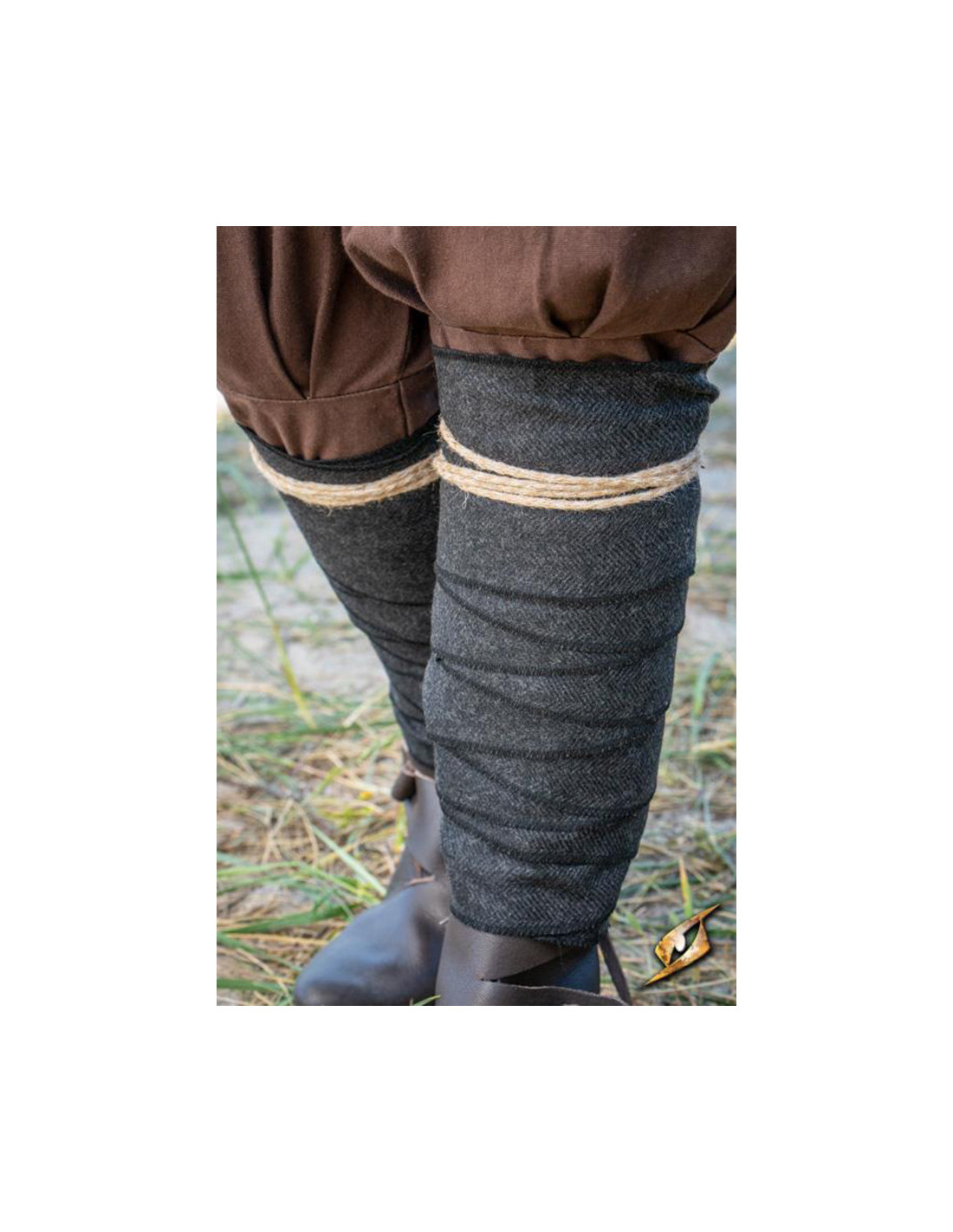 Hechas de largas tiras de tela tejidas en un patrón de espina de pescado, estas winingas de lana no solo ofrecen protección, sino que también añaden un toque de estilo a tu traje de época. Su diseño único y detallado complementará perfectamente cualquier atuendo medieval o fantástico.