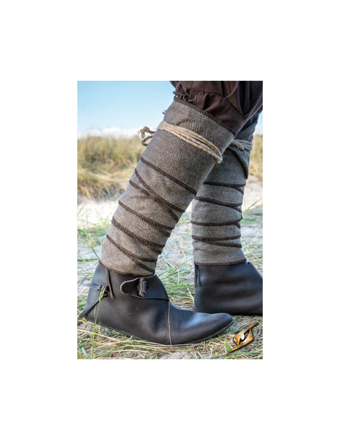 Nuestras vendas para las piernas se enrollan desde el tobillo hasta la rodilla, proporcionando una protección completa para tus extremidades inferiores. Puedes atarlas o sujetarlas con un alfiler para asegurarte de que se mantengan en su lugar durante toda la batalla.