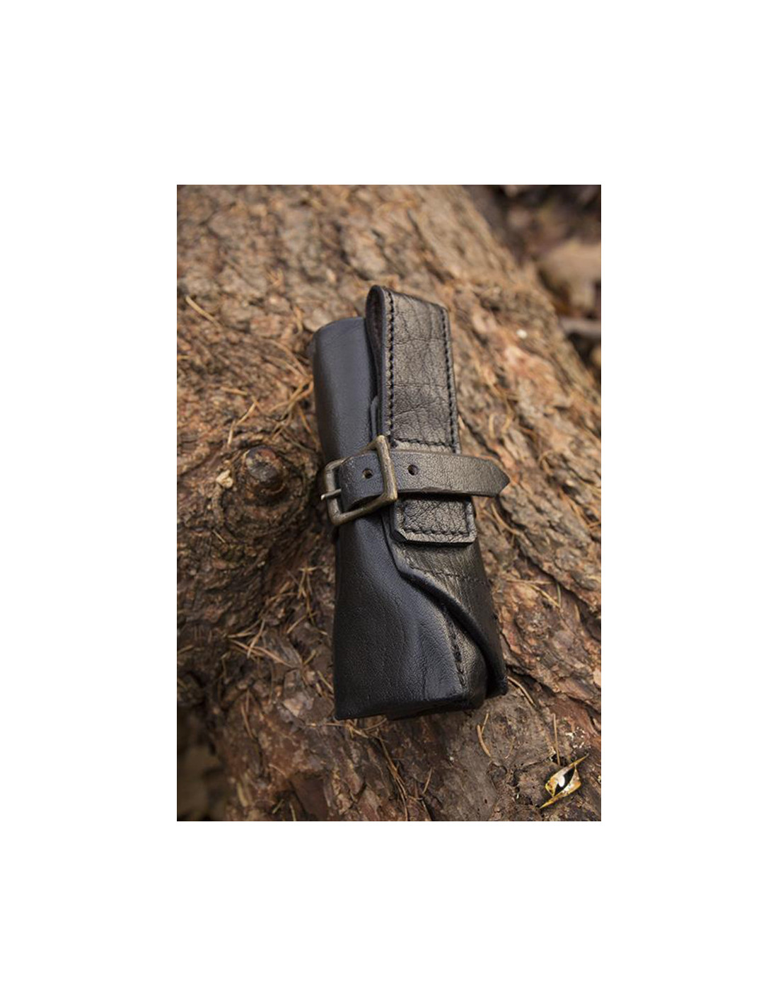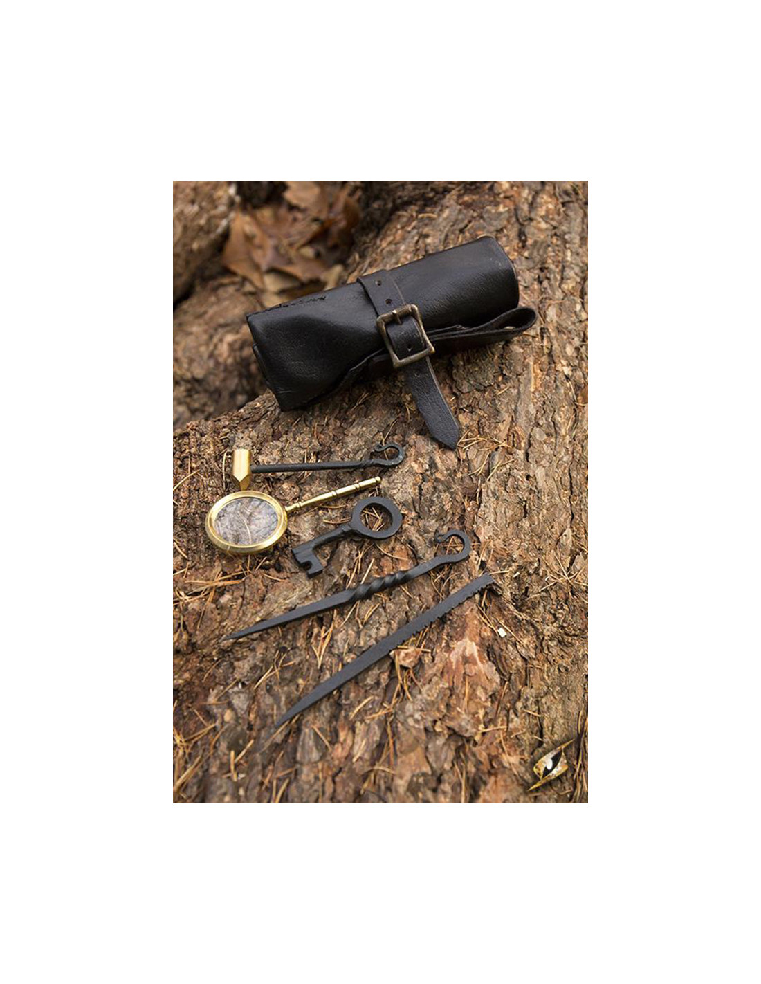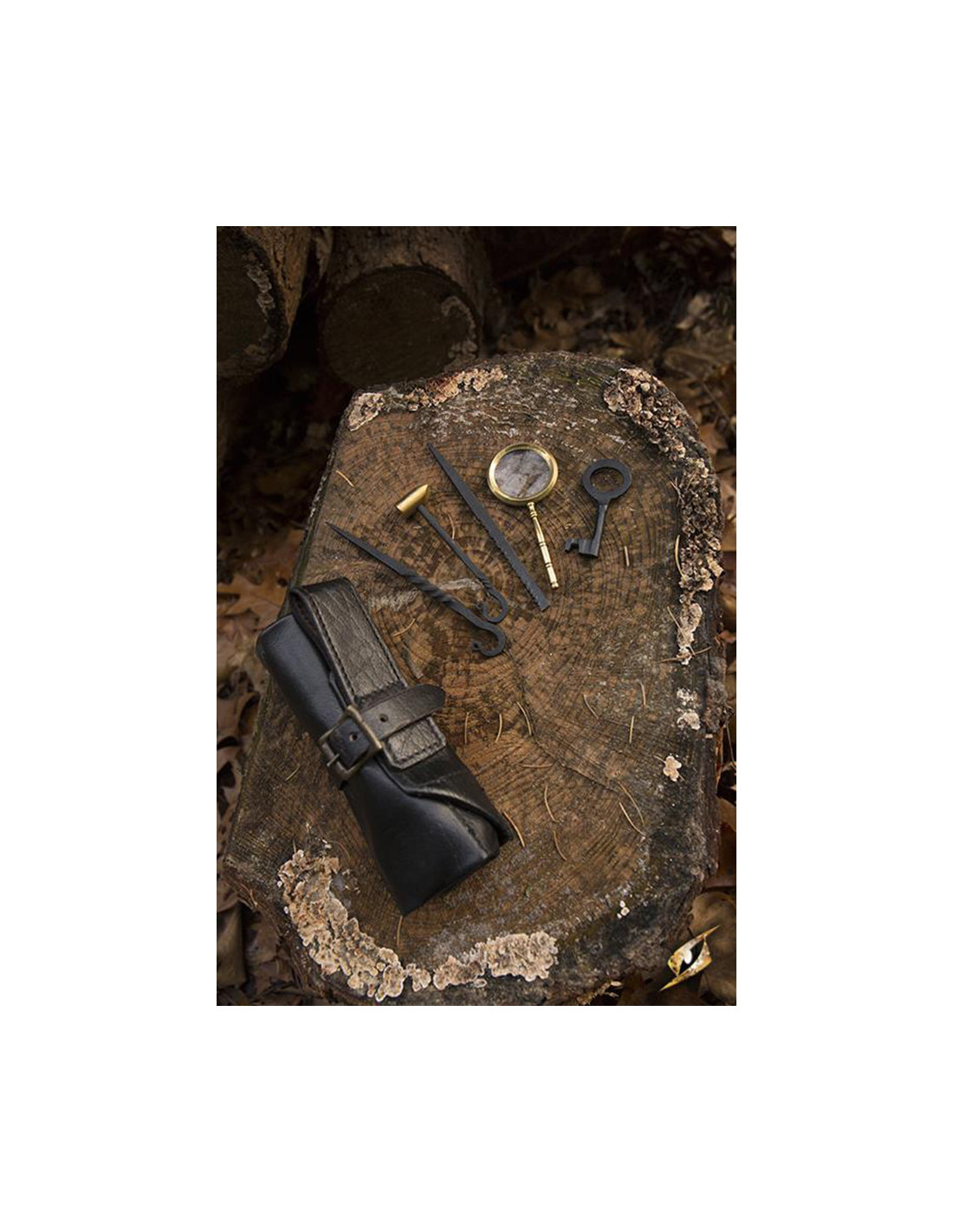 Fabricadas en acero y latón de alta calidad, estas herramientas ofrecen durabilidad y resistencia, garantizando un rendimiento óptimo en cada uso. Además, vienen acompañadas de una elegante funda de cuero con hebilla para cerrar, lo que te permite llevarlas colgadas en tu cinturón de manera segura y cómoda.