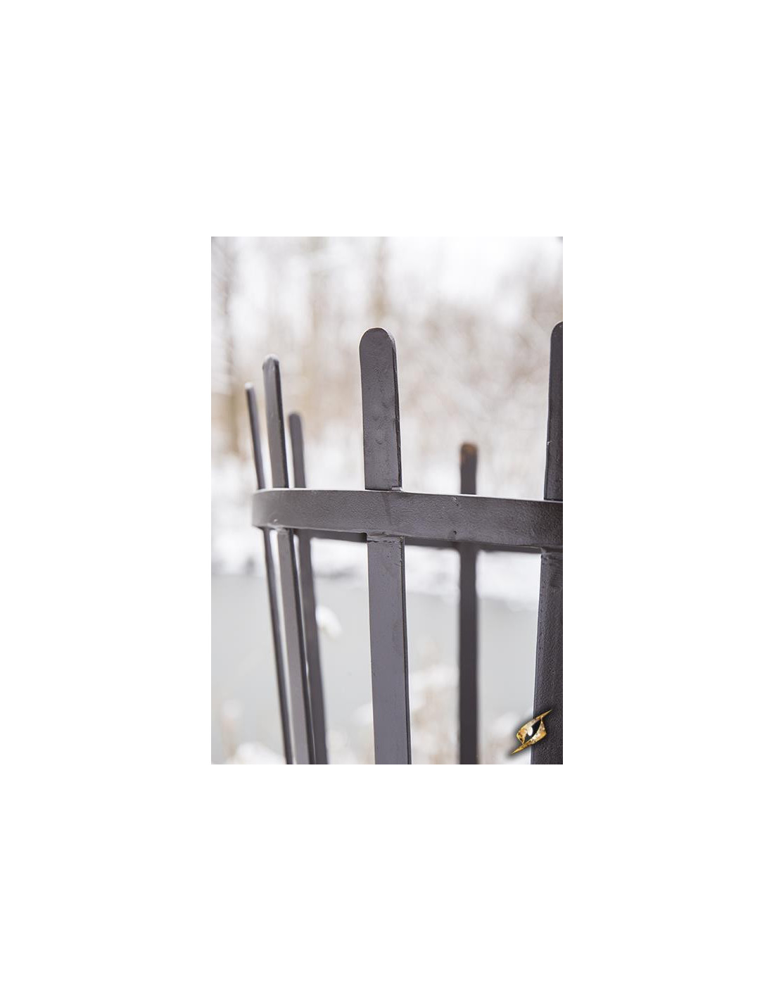 Su base de acero, con una bandeja de 40 cm de ancho y un agarre de metal en la parte superior, te garantiza seguridad y estabilidad. Además, está montado en una canasta de fuego de acero reforzada con un resistente anillo de metal en la parte superior.