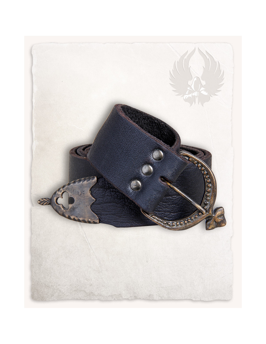 Con un ancho de 5 cm y un largo de 155 cm, este cinturón se ajustará fácilmente a tu medida, brindándote comodidad y estilo al mismo tiempo. Está confeccionado con cuero de alta calidad y cuenta con herrajes decorativos medievales en latón, que le dan ese toque auténtico y sofisticado que estás buscando.