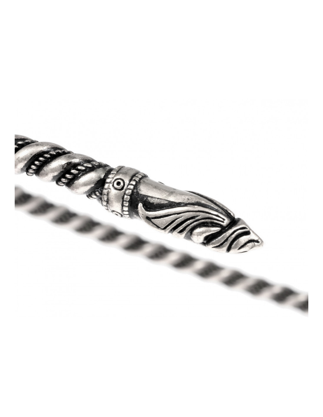 El modelo histórico de este Viking Torque se inspira en el tesoro sueco de Undrom cerca de Boteå en Ångermanland y ahora está en posesión del Historiska Museet en Estocolmo. Al lucir este torque, estarás llevando contigo un pedazo de historia y conectándote con el legado vikingo de forma excepcional.