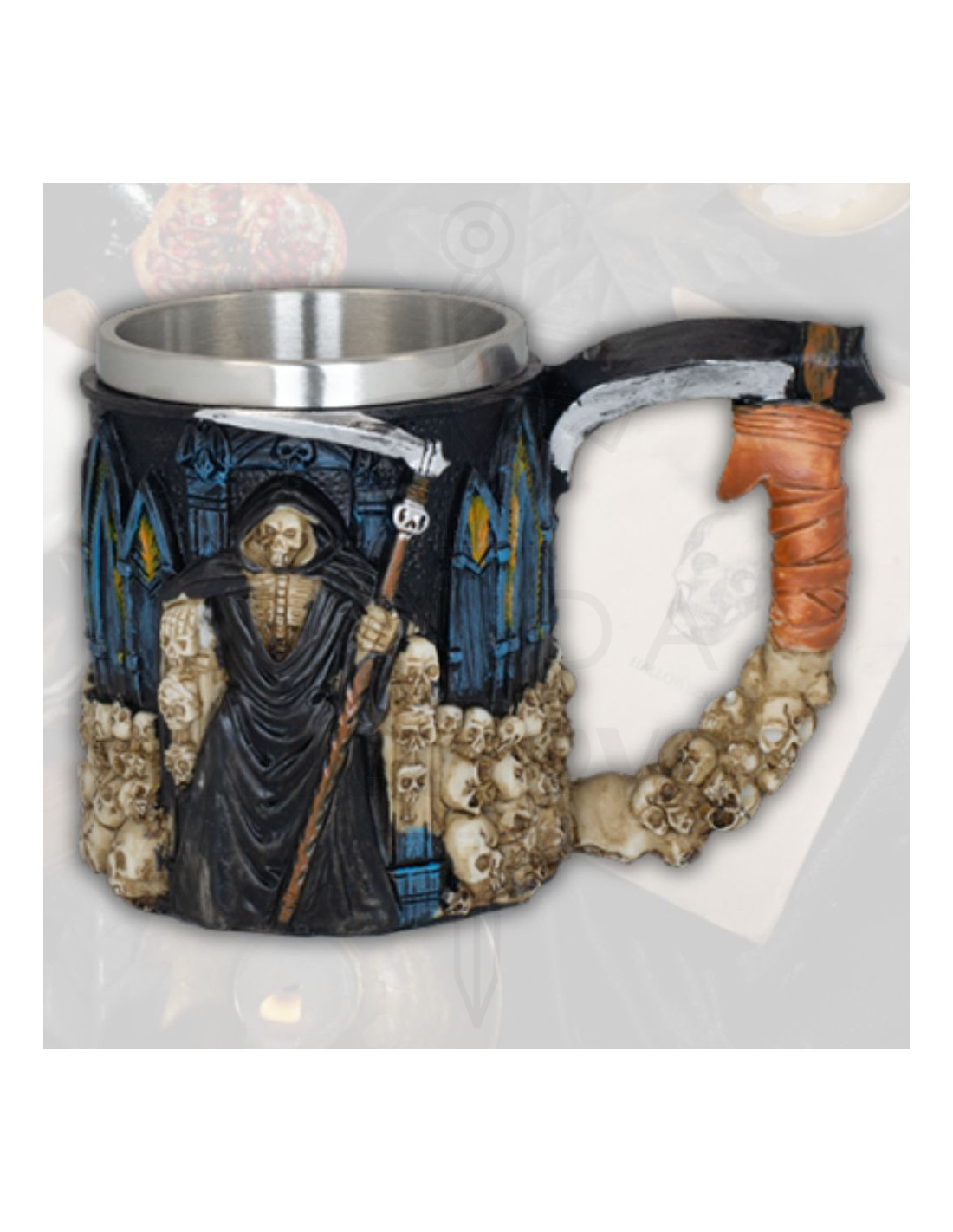 Descubre la fascinante taza de resina gótica 'Muerte con Guadaña' de la marca Tole10, una obra maestra en diseño y funcionalidad que hará destacar tu colección o decoración personal. Esta taza única fusiona arte y practicidad, destacando por su material duradero de resina que reproduce hasta el más mínimo detalle de su espectacular diseño gótico.