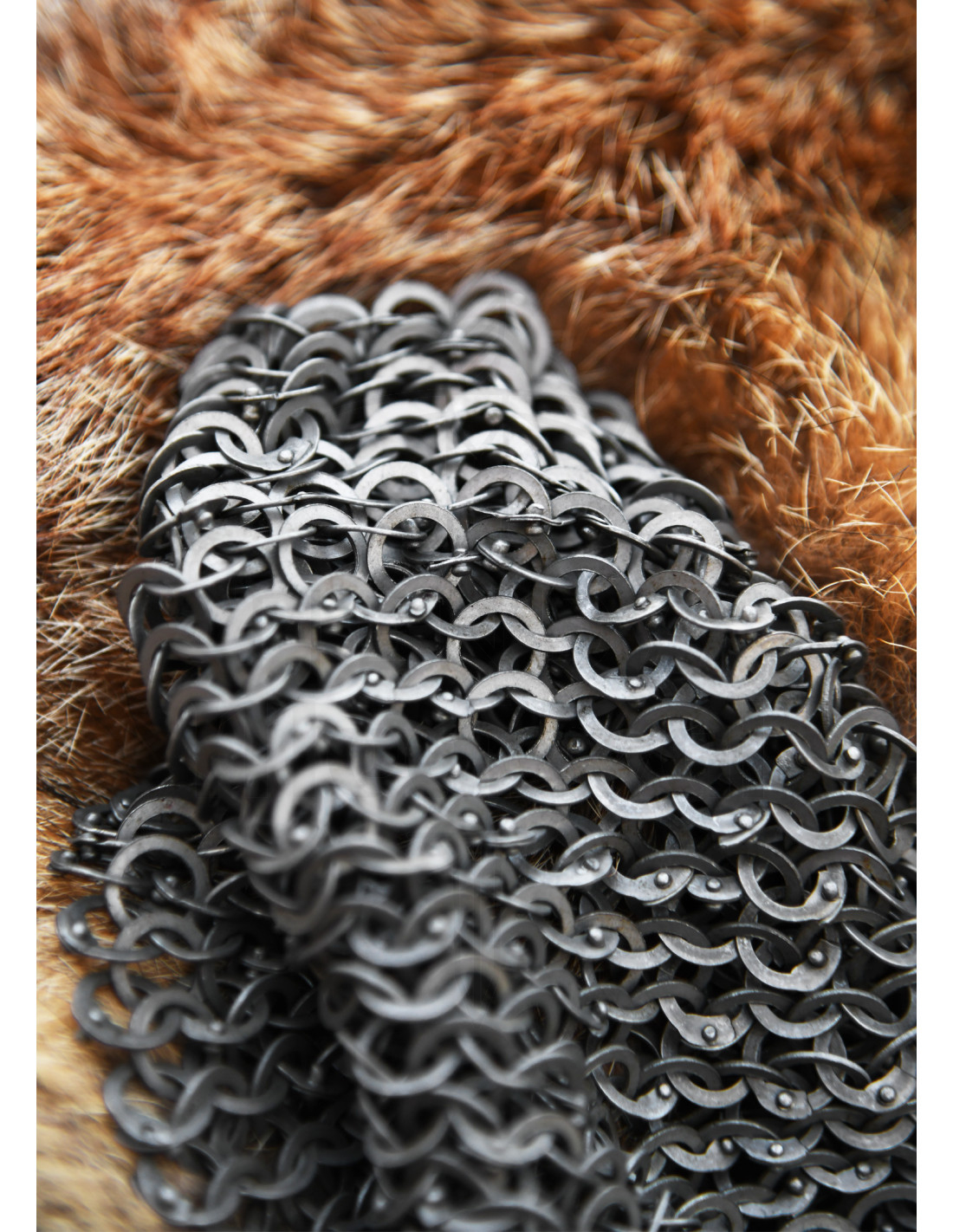 Su tejido europeo de anillas planas combinadas con remaches redondeados no solo garantiza una resistencia excepcional, sino que también aporta un acabado estético que refleja la maestría de la herrería antigua. Su diseño alternado de anillas sólidas remachadas ofrece un equilibrio perfecto entre flexibilidad y protección, permitiéndote comodidad sin sacrificar durabilidad.