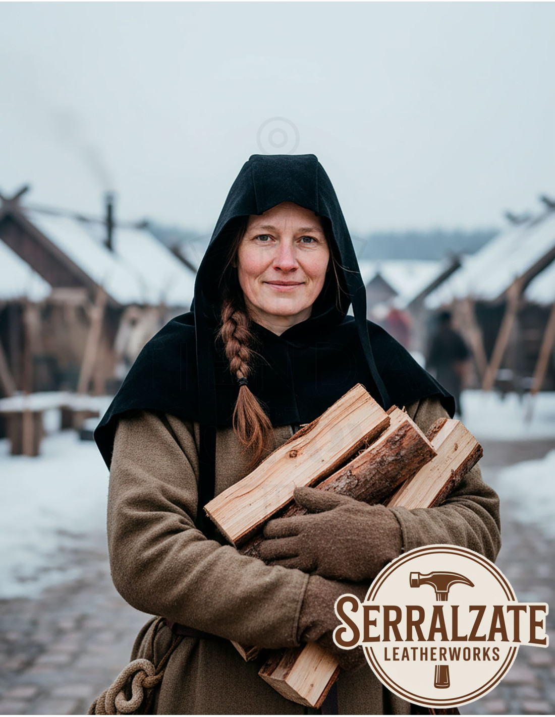 ¡Dale un toque auténtico a tu vestuario medieval con esta elegante capelina de cuero, diseñada para los amantes de la historia y la aventura! Fabricada en suave gamuza en color negro, esta pieza combina comodidad y estilo, permitiéndote lucir como un auténtico caballero o dama de época.
