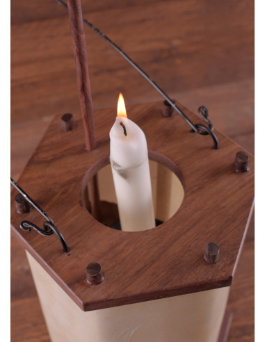 Linterna de madera con cuero crudo (23,5 cm.)