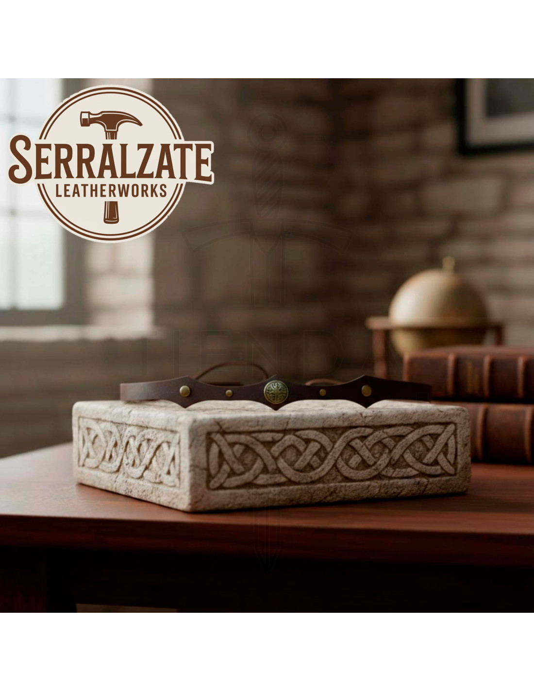 Perfecta para quienes desean añadir un toque de identidad celta a su look diario o para ocasiones especiales, su acabado elegante convierte cada uso en una experiencia única. La textura de la piel y el brillo sutil del adorno metálico en oro viejo aportan un contraste sofisticado, ideal para combinar con prendas naturales o bohemias.