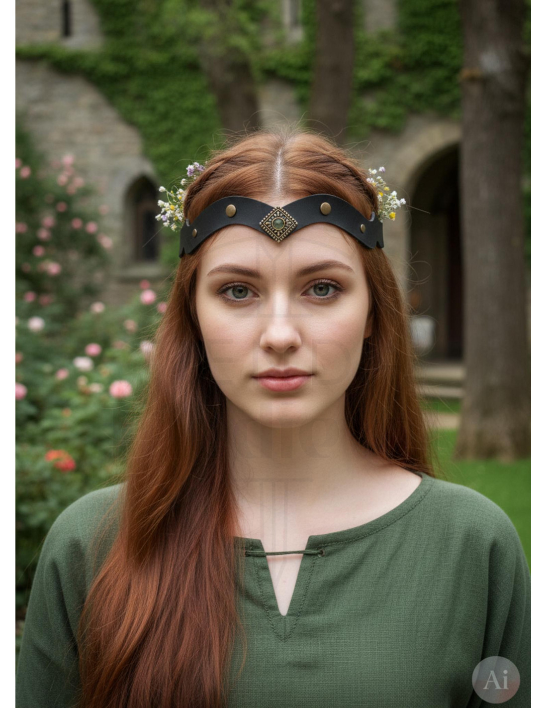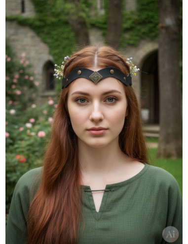 ¿Buscas un toque de elegancia medieval que puedas adaptar a tu estilo? La tiara medieval Florian en negro es la elección perfecta para quienes desean un acabado auténtico y artesano en cada detalle. Su diseño versátil se ajusta con facilidad gracias a un práctico nudo de cuero en la parte trasera, garantizando comodidad y un ajuste perfecto sin complicaciones.