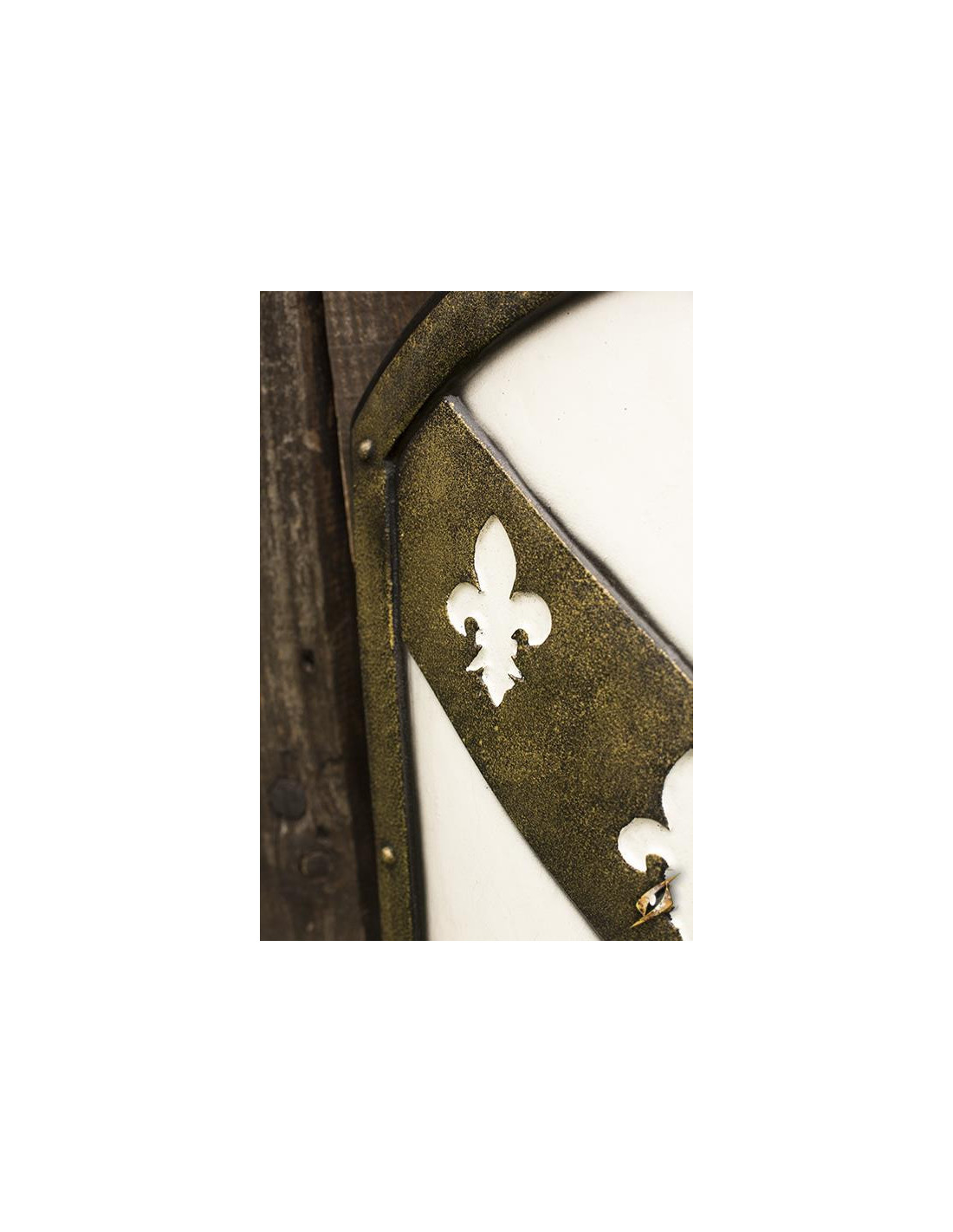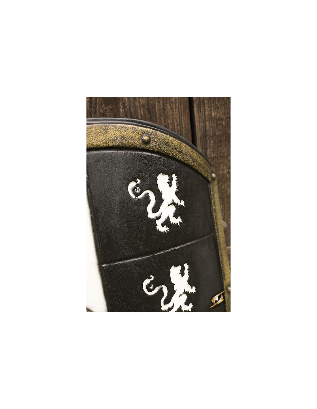 Escudo Leones Caballero Medieval Blanco/Dorado en látex, 80x50 cm.