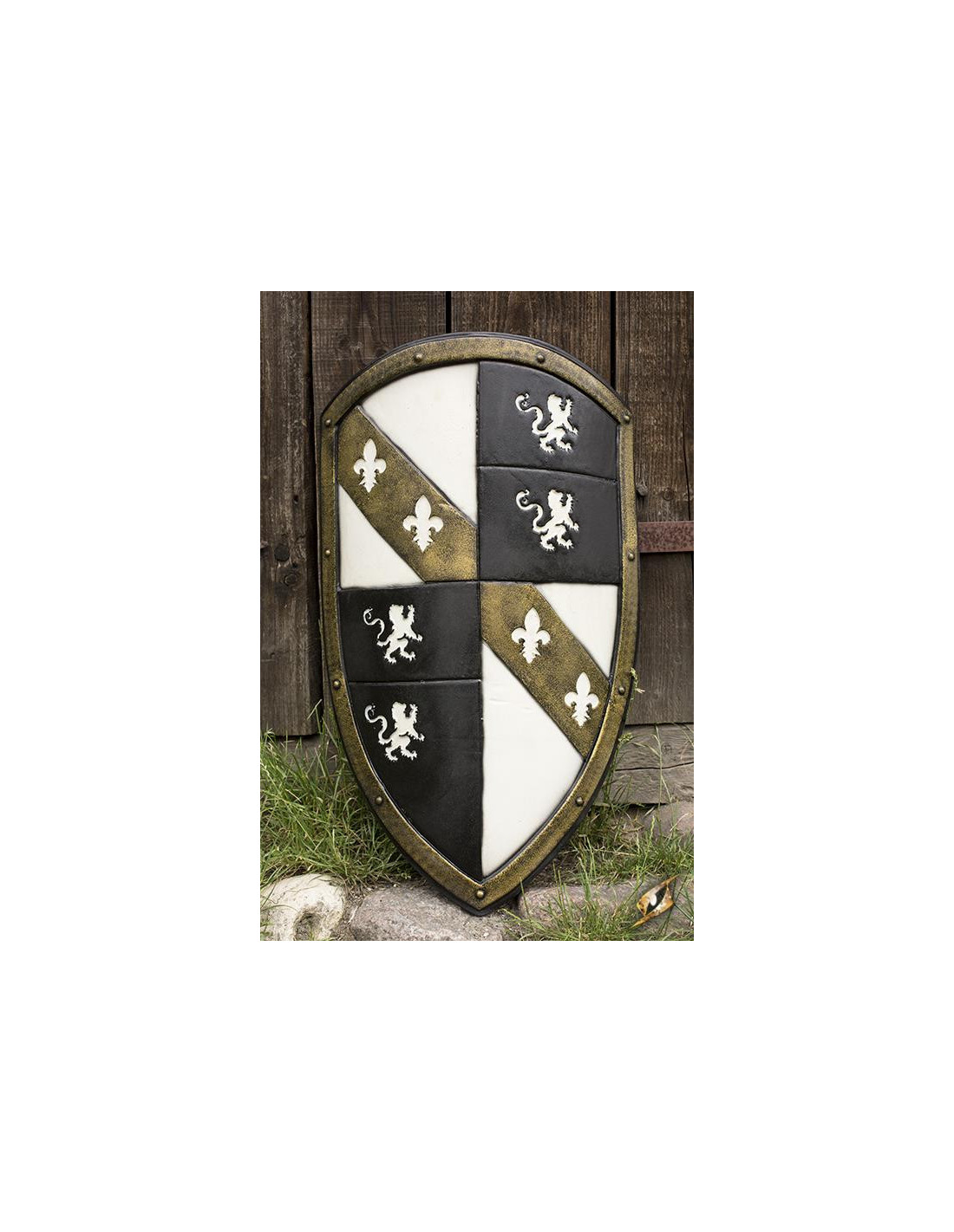 En resumen, el Escudo Leones Caballero Medieval Blanco/Dorado en látex de Epic Armoury es el escudo perfecto para aquellos que buscan un equilibrio entre estilo, funcionalidad y durabilidad. No pierdas la oportunidad de añadir este impresionante escudo a tu colección y destacar en tus próximas batallas.
