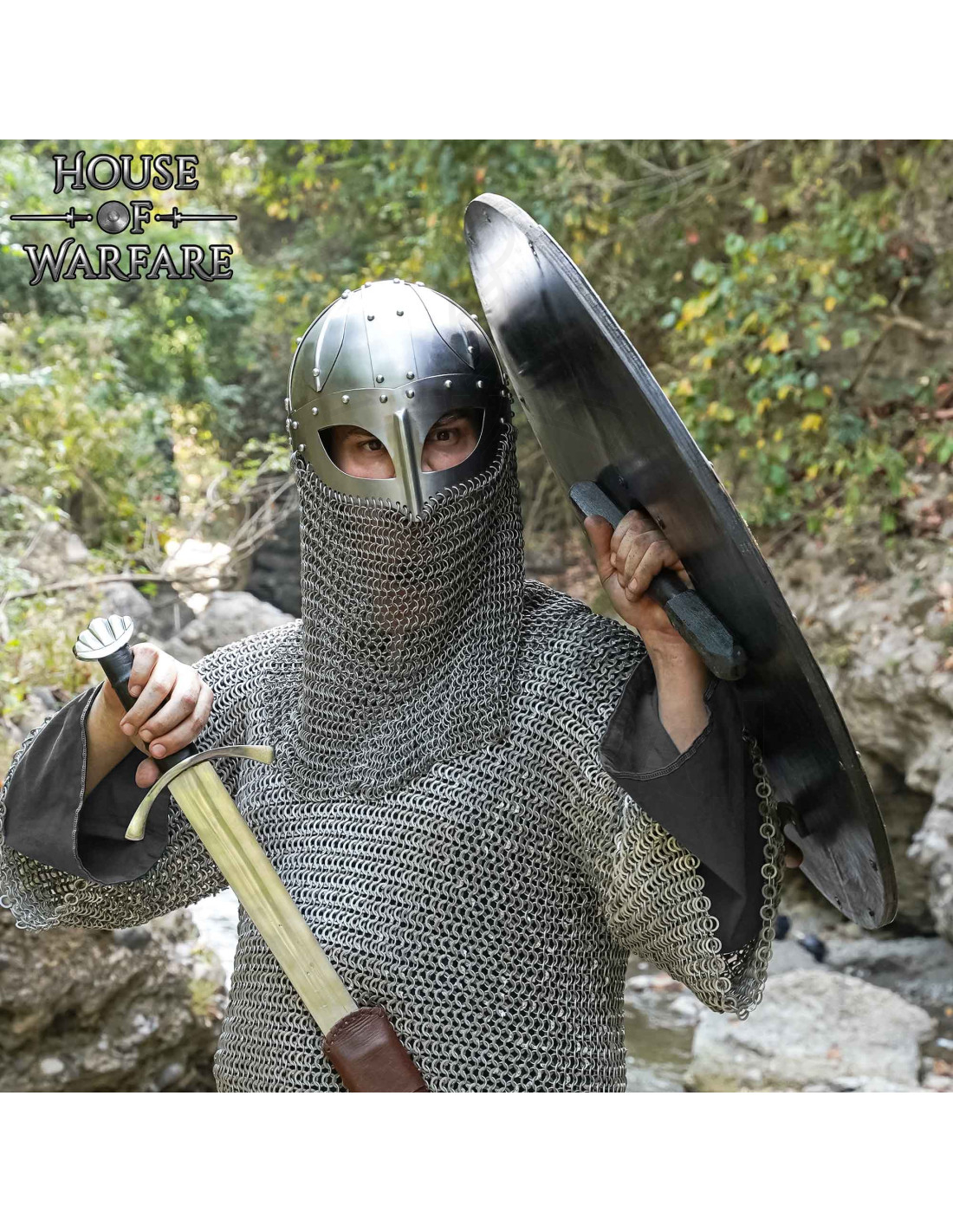 Perfecto para quienes quieren comprar Escudo vikingo redondo de madera modelo Aegishjalmur como pieza de colección, para LARP, ambientaciones temáticas, utilería o decoración con carácter, sin renunciar a una construcción duradera y un acabado que destaca a distancia.