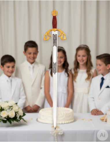 ¡La espada Tizona del Cid, el regalo perfecto para comuniones! Este clásico de la tradición española es ideal para celebrar el día de la Comunión de una manera especial. Y lo mejor de todo es que el precio incluye un texto personalizado grabado al láser en una de las caras de la espada. ¡Un detalle único y exclusivo!