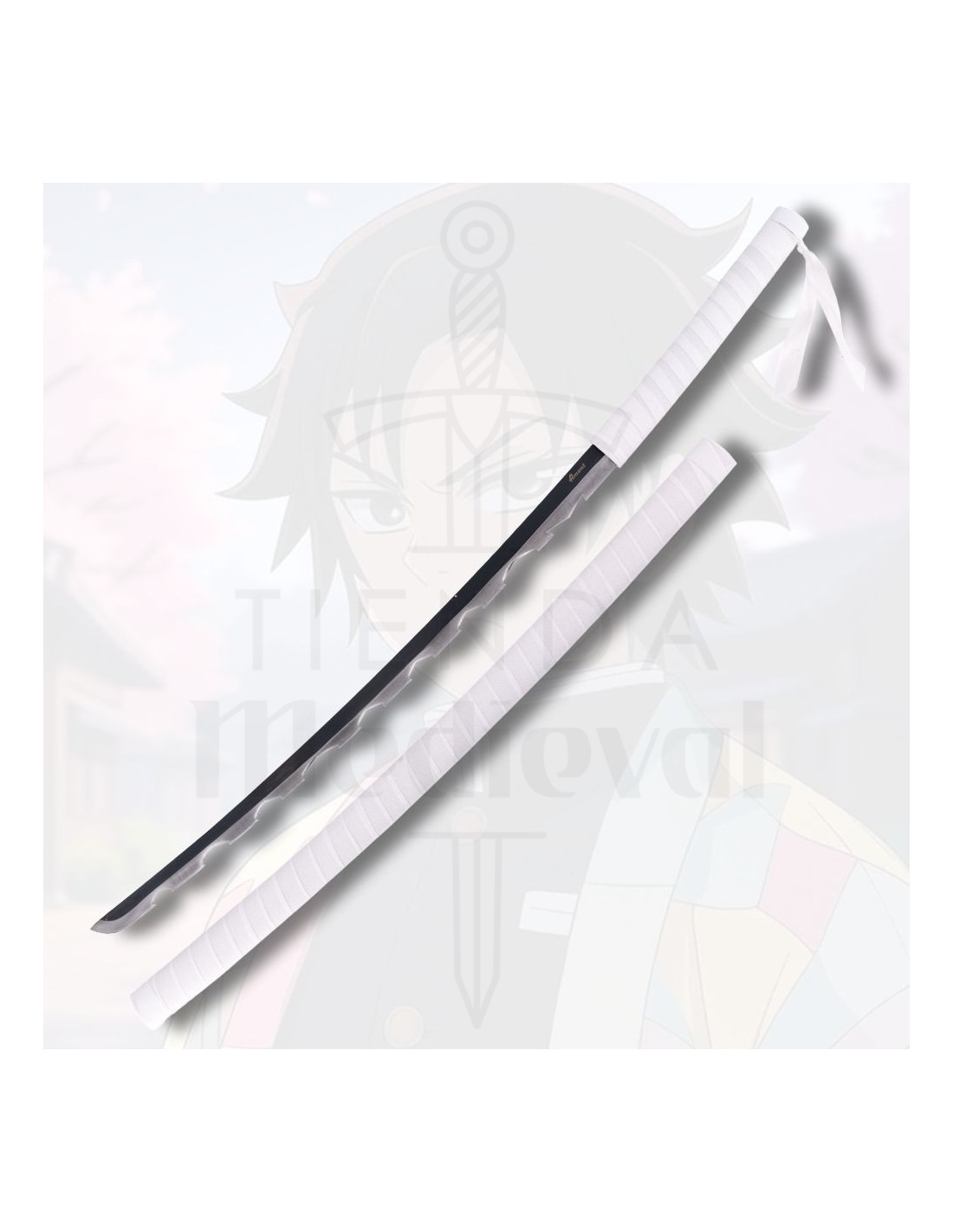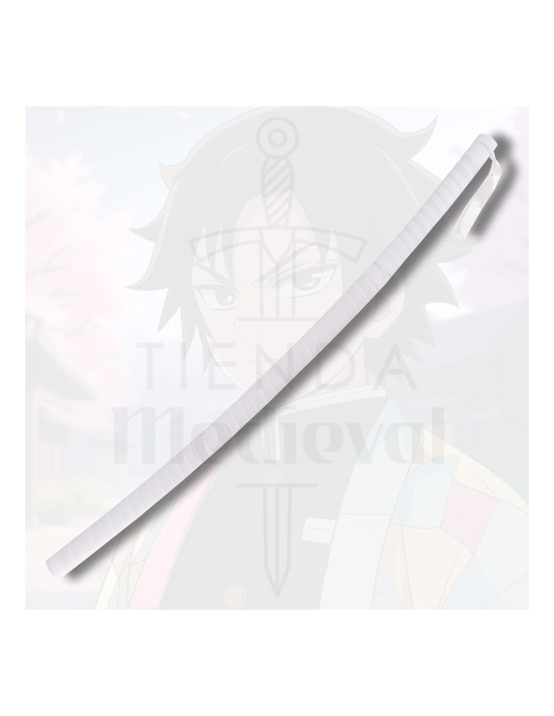 El mango, envuelto en encordado blanco, no solo mejora la estética sino que también facilita un agarre cómodo y seguro. La vaina blanca, acompañada del encordado a juego, complementa perfectamente el diseño y hace que sea fácil exhibirla en tu espacio favorito. Gracias a su peso ligero de 860 gramos, podrás manipularla con confianza para exhibiciones o como un accesorio llamativo en eventos temáticos.