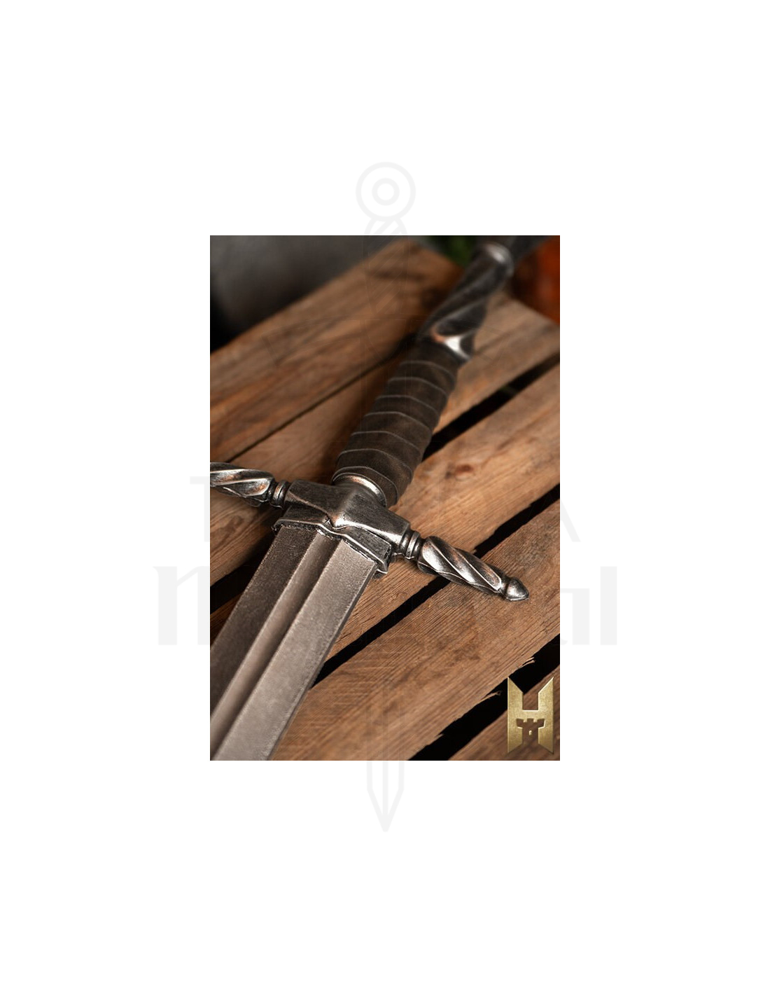 Diseñada para quienes desean una pieza que transmita poder y estilo, esta espada forma parte de la serie Stronghold Masters, creada específicamente para uso en contacto extremo, garantizando seguridad y durabilidad con materiales de alta calidad. Su mango con pomo y cruz de espiral, moldeados en una sola pieza, ofrece un agarre cómodo y firme, mientras que su empuñadura en cuero añade un toque de elegancia y control durante el combate.