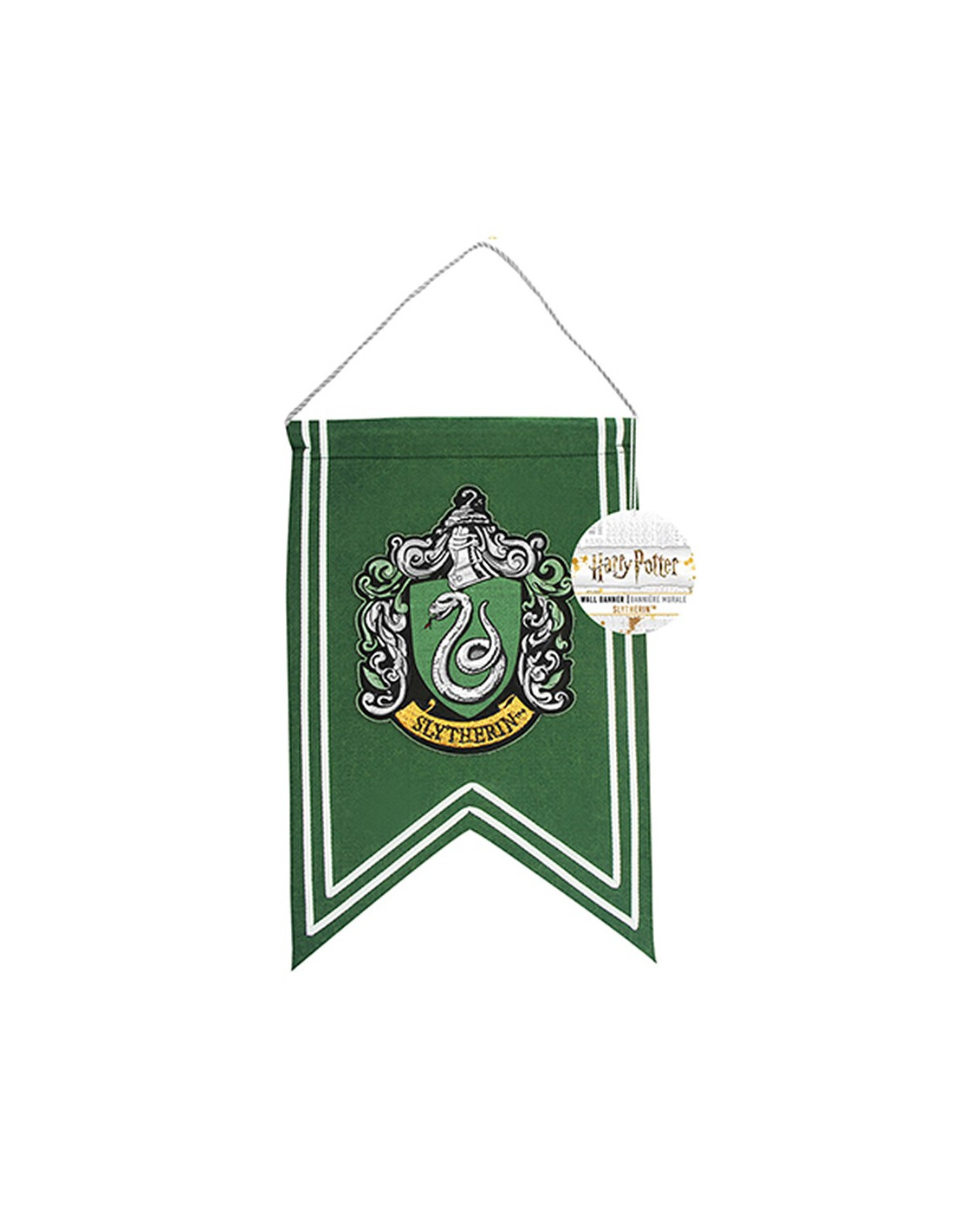 ¡Haz que tu hogar tenga un toque mágico con la bandera de pared de la Casa Slytherin de la famosa saga de películas y libros de Harry Potter!
