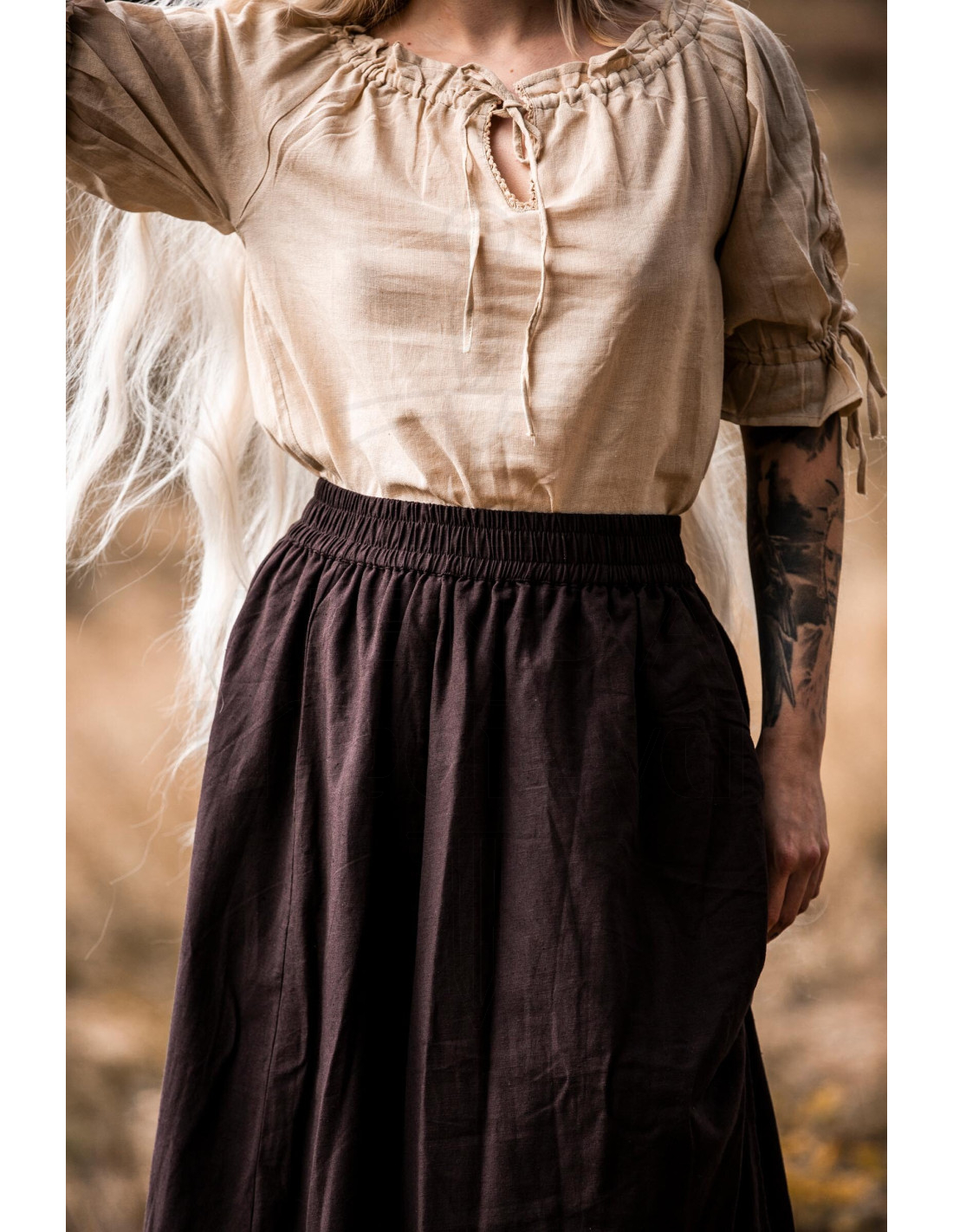 Comprar Falda Medieval modelo Elise Marrón-Natural significa elegir una prenda versátil, que funciona tanto en recreaciones históricas como en outfits de calle con un toque distintivo. Su paleta en tonos marrón y natural facilita combinaciones con capas, cinturones o botas, ofreciendo variedad sin perder coherencia estética.