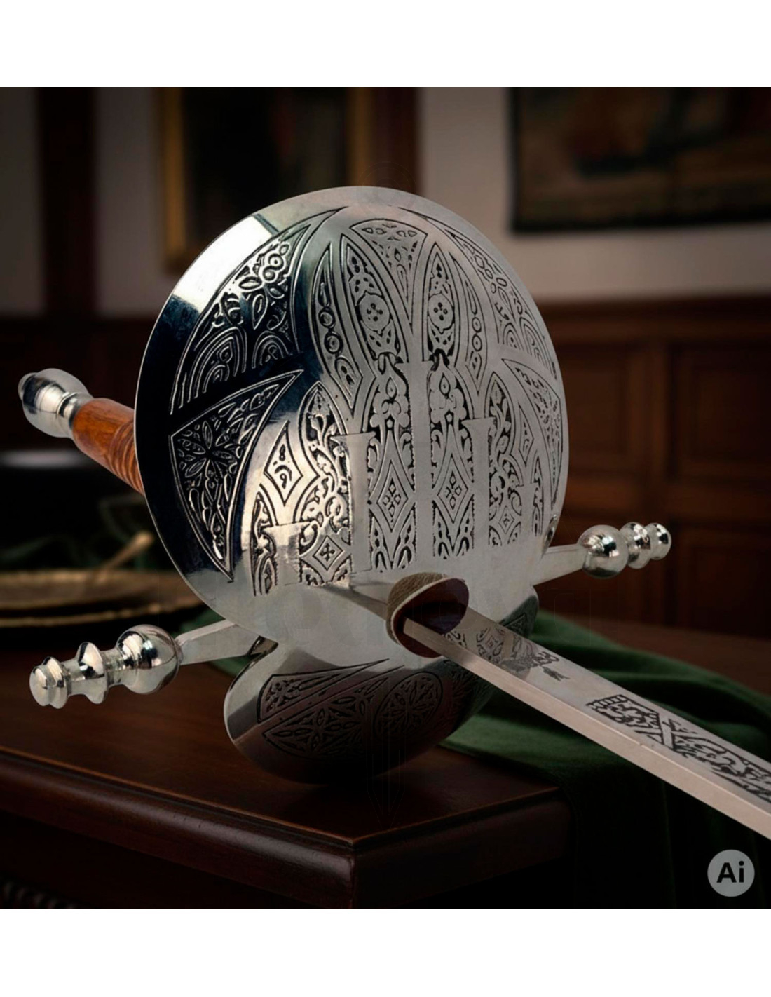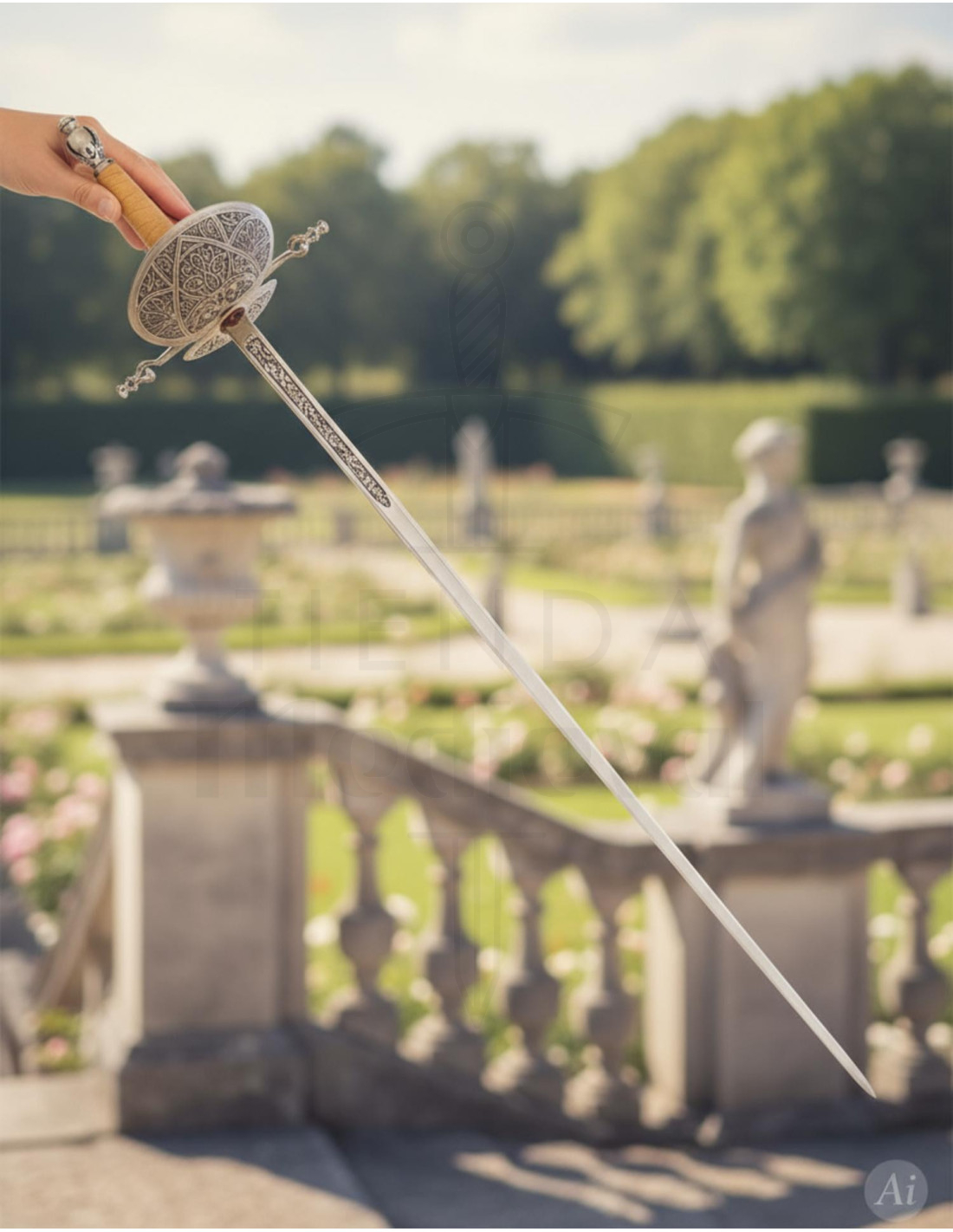 Añada historia y elegancia a su espacio con este florete de concha, una réplica de alta calidad ideal para coleccionistas y amantes de la esgrima clásica.