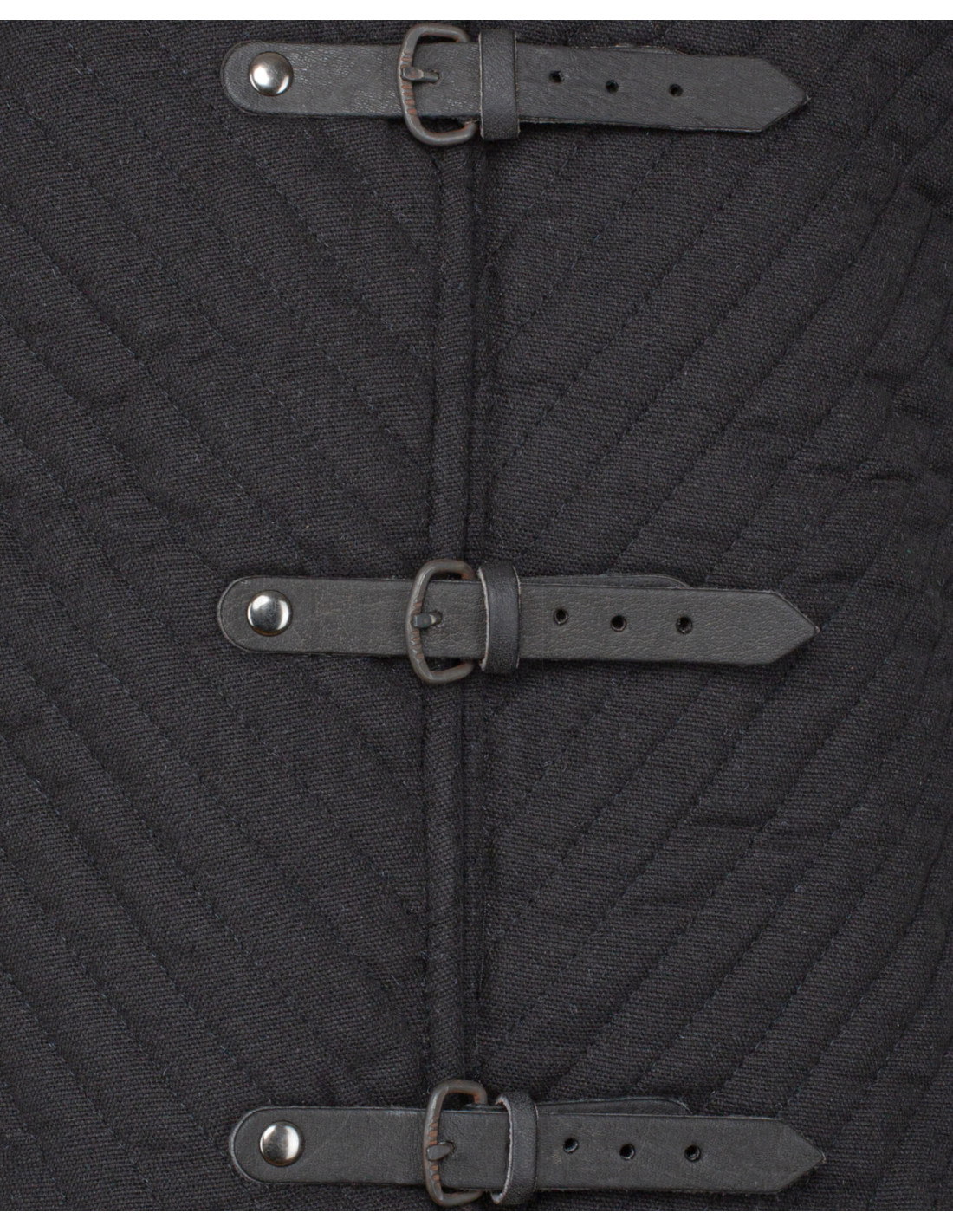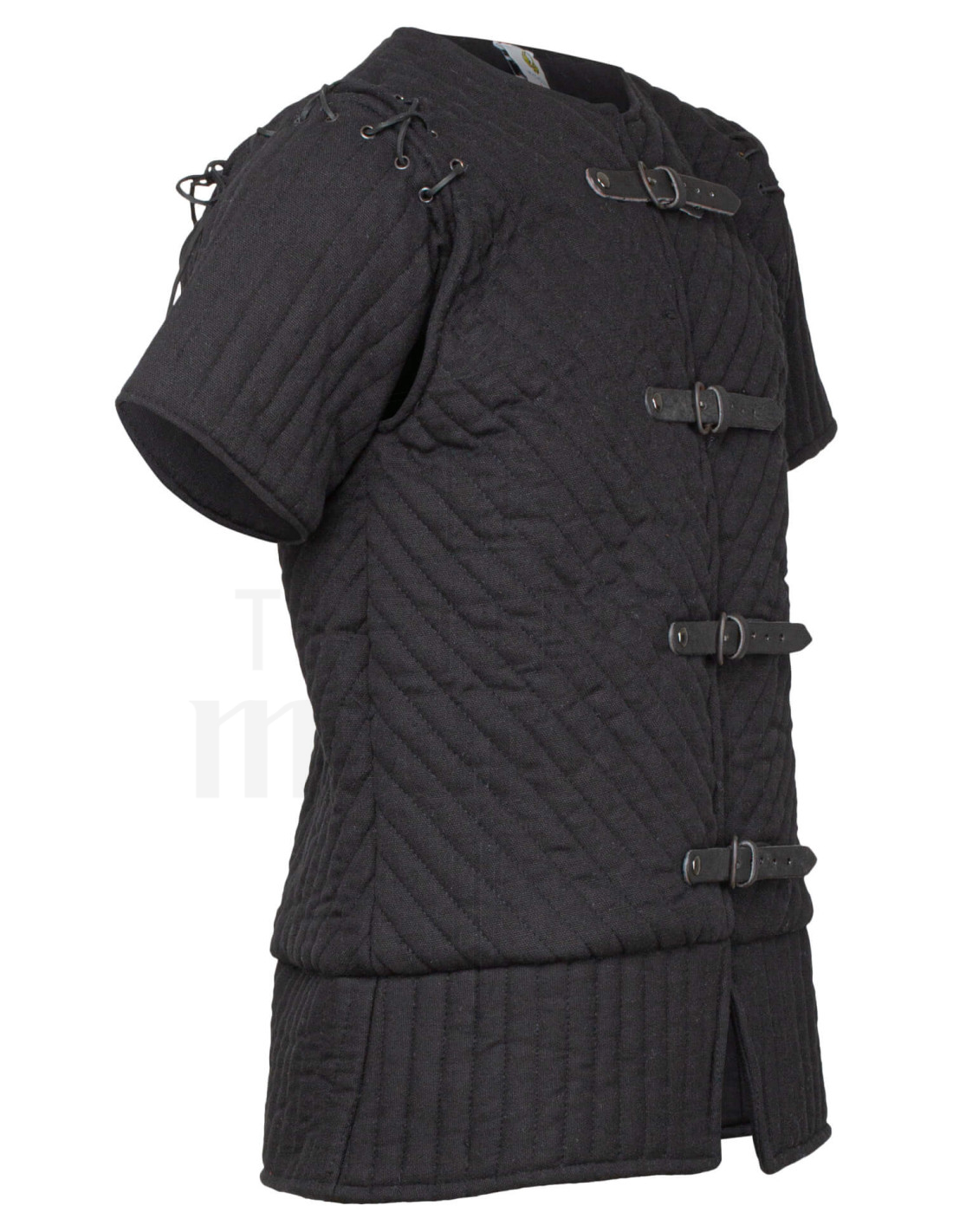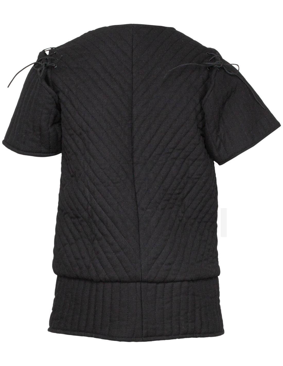 Fabricado en 100% algodón, tanto en exterior como en forro, con acolchado de poliéster, este gambesón combina calidad, confort y estética histórica. El negro intenso añade un toque de solemnidad y versatilidad, ideal para complementar diferentes estilos de armaduras, ya sea como prenda exterior o como protección adicional debajo de una cota de malla o armadura de placas.