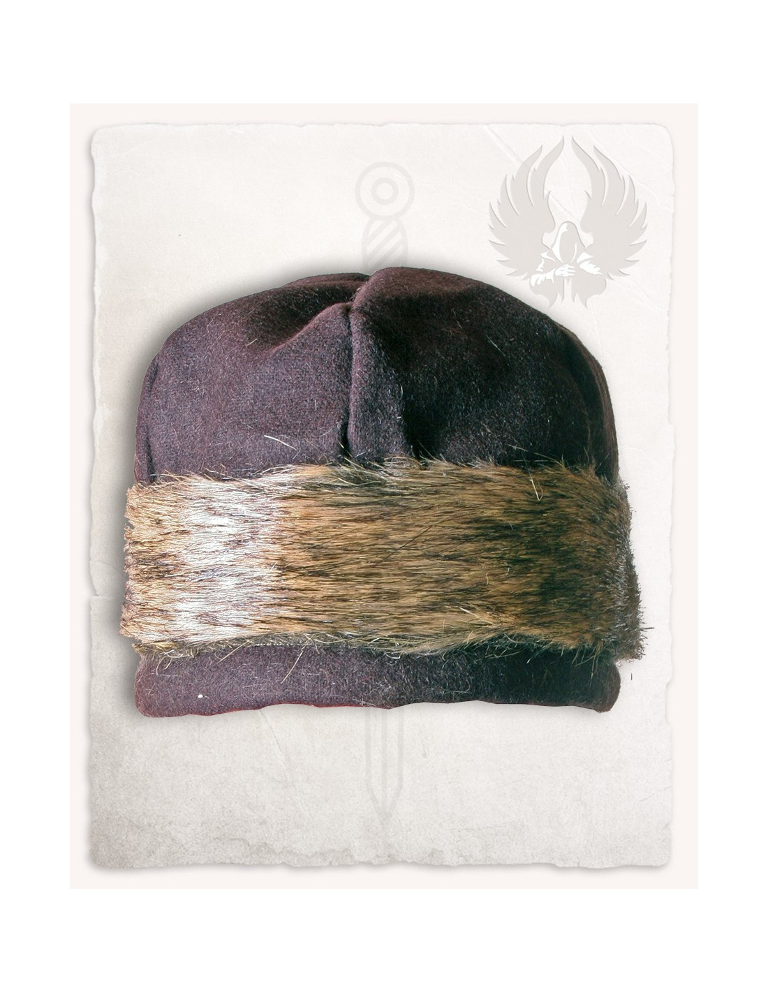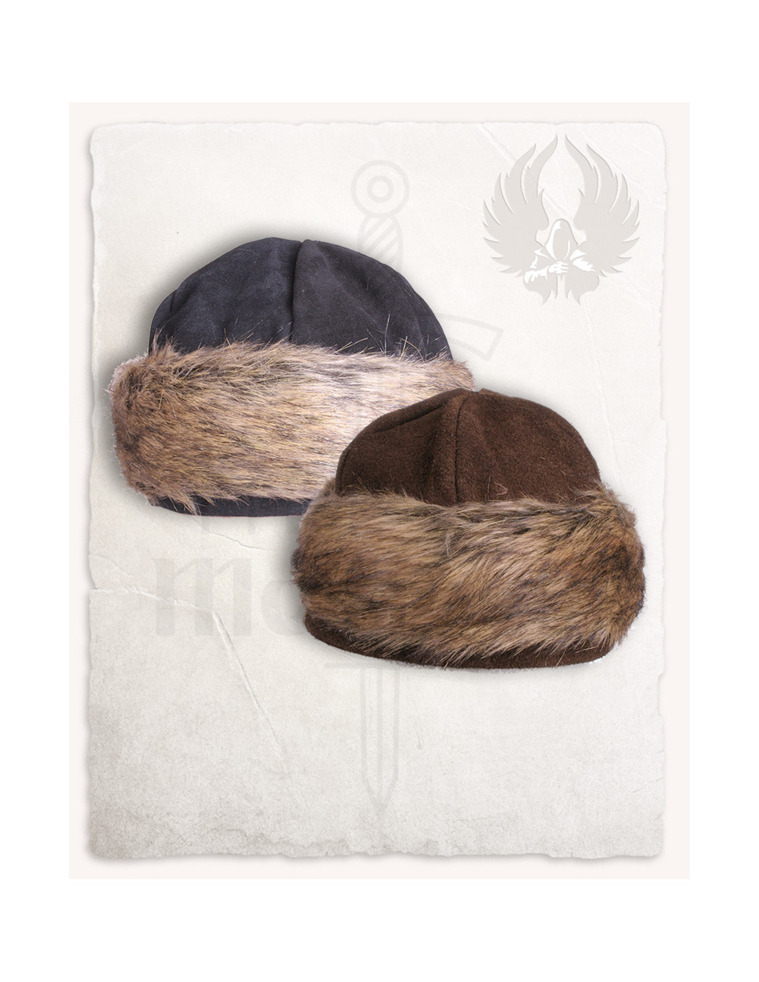 ¿Quieres complementar tu vestuario con un toque auténtico y lleno de historia? Este gorro medieval de piel, modelo Ragi, en brillante tono marrón, es la pieza perfecta para darle carácter a tu look. Inspirado en imágenes históricas, su diseño incluye una elegante banda de pelo artificial que recorre su contorno, aportando un toque de rusticidad y sofisticación a la vez.