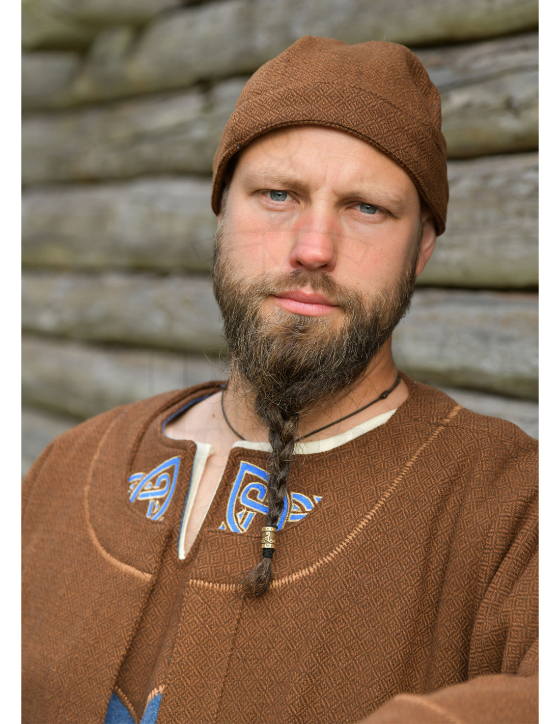 El diseño se inspira en hallazgos de Hedeby y Birka, dos enclaves clave para entender la indumentaria vikinga, lo que dota al gorro de una autenticidad reconocible por reenactores y amantes de la historia. Esa conexión con el pasado hace que llevarlo sea también una declaración de estilo y respeto por la artesanía tradicional.