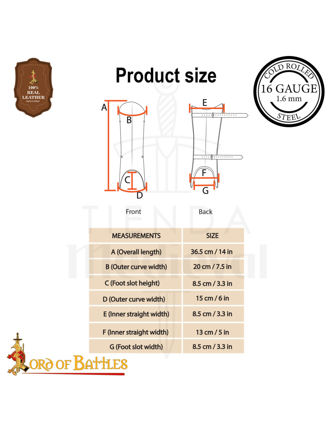 Perfectas para recreadores, coleccionistas y entusiastas que valoran funcionalidad y presencia histórica, estas grebas elevan cualquier vestuario sin complicaciones, ofreciendo seguridad discreta y un aspecto auténtico que respalda cada interpretación.