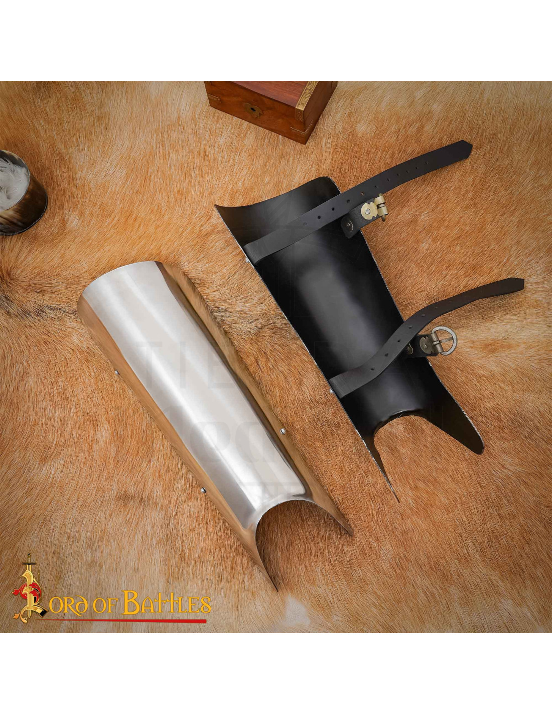 El diseño sobrio y el acabado metálico plateado aportan un aspecto genuino y versátil, ideal tanto para recreación seria como para exhibiciones o eventos temáticos. Al no llevar adornos innecesarios, se integran con distintos conjuntos de armadura y mantienen una línea funcional que realza la credibilidad de tu atuendo.