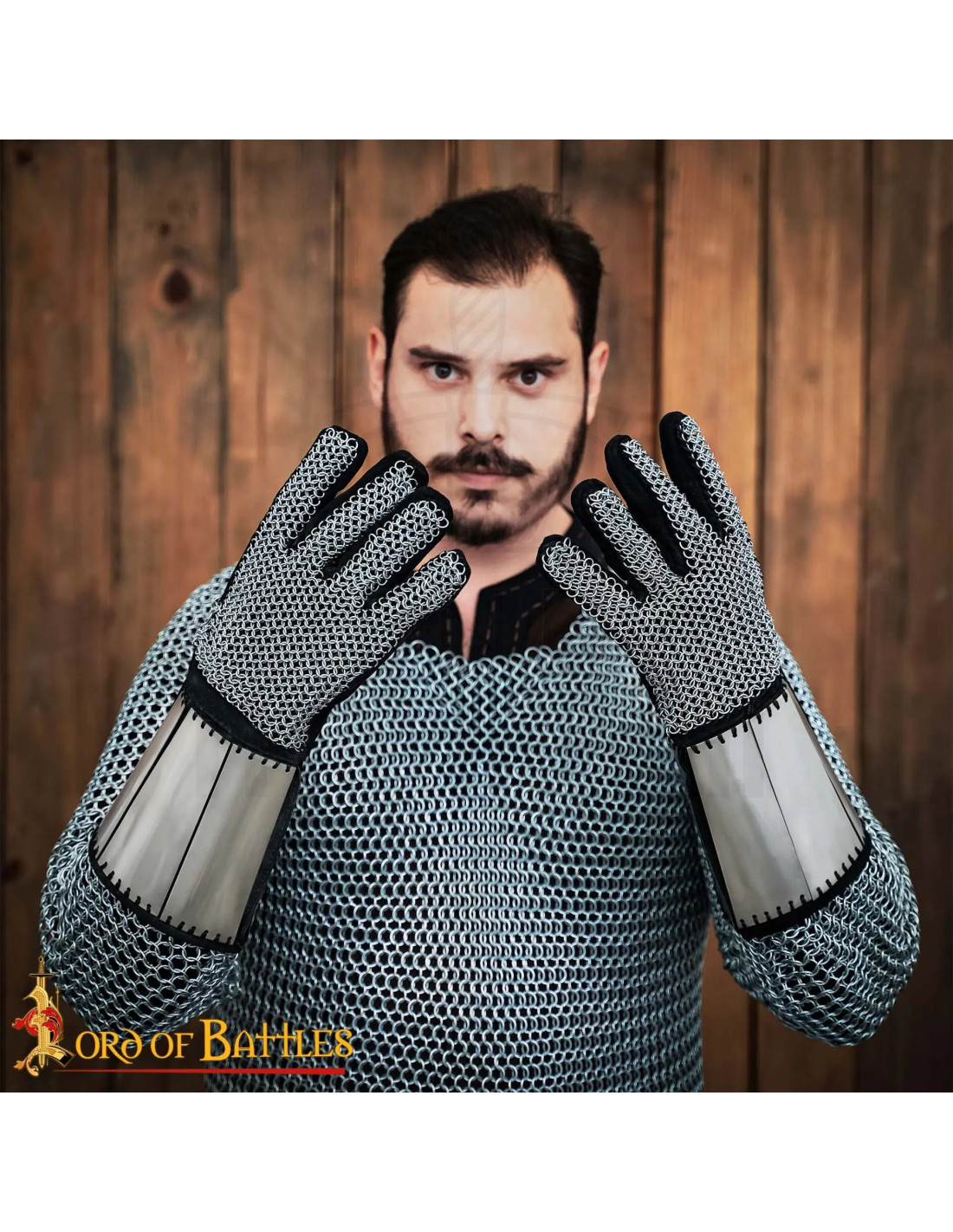 No pierdas la oportunidad de agregar estos magníficos guantes a tu colección. Ya sea que seas un apasionado de la historia, un miembro de una sociedad de recreación histórica o simplemente quieras añadir un toque único a tu estilo, los guantes de cota de malla de la Baja Edad Media son la elección perfecta.
