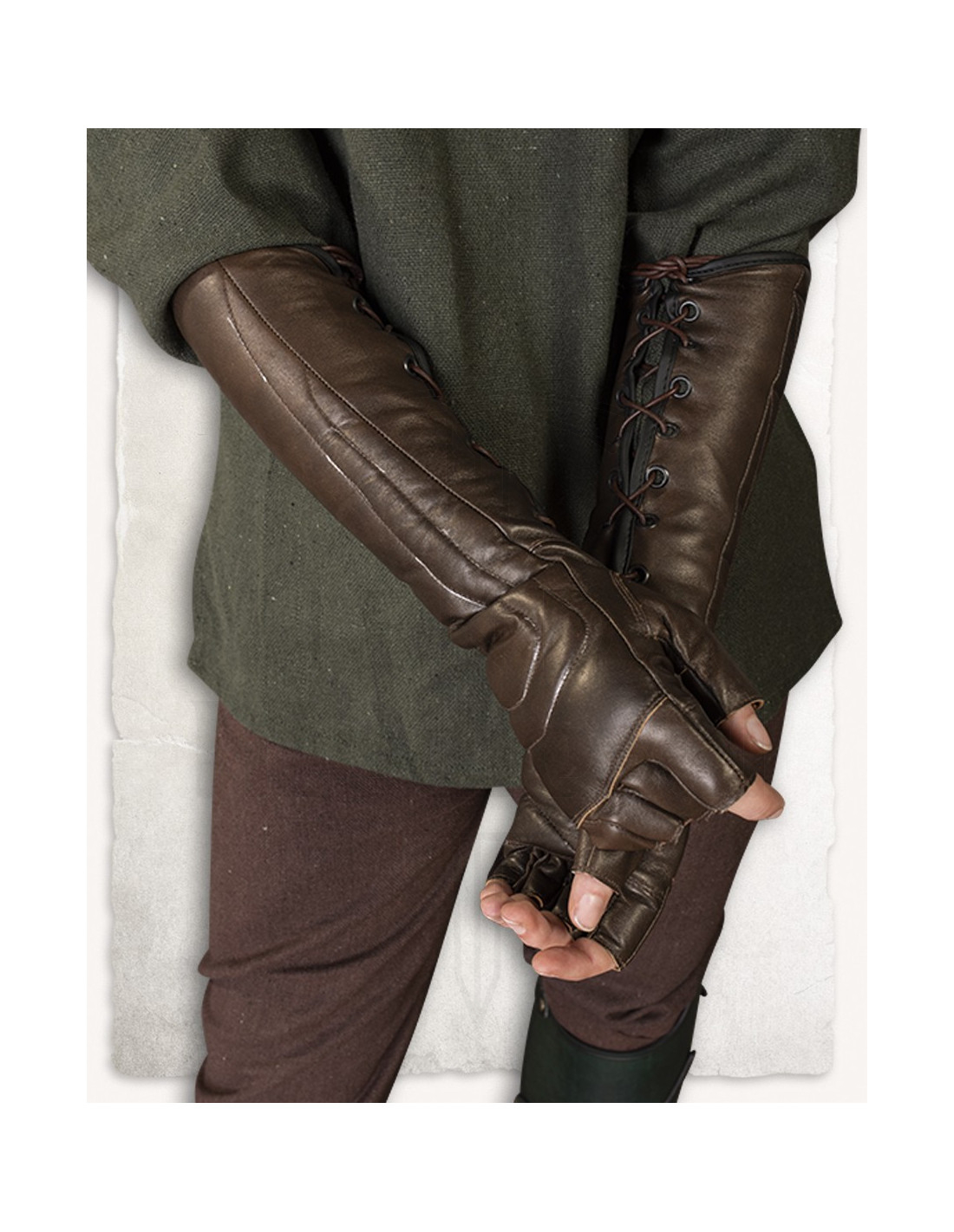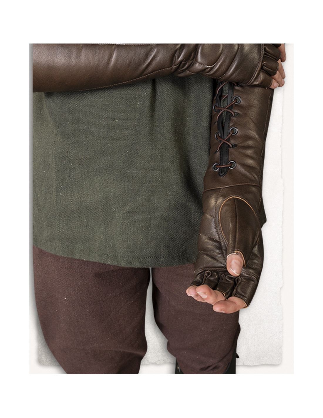 ¿Buscas unos guantes que combinen estilo y funcionalidad, perfectos para completar tu look de aventurero o guerrero? Estos guantes medievales sin dedos en piel modelo Gillian son la elección ideal para dar ese toque auténtico a tus juegos de rol en vivo, cosplay o temática steampunk.