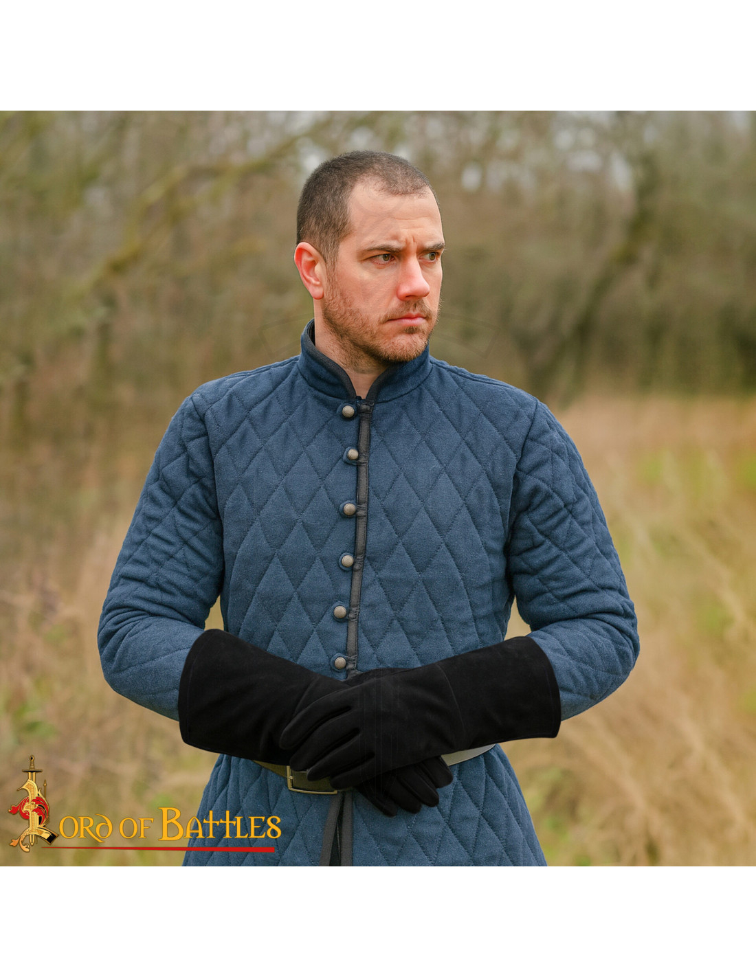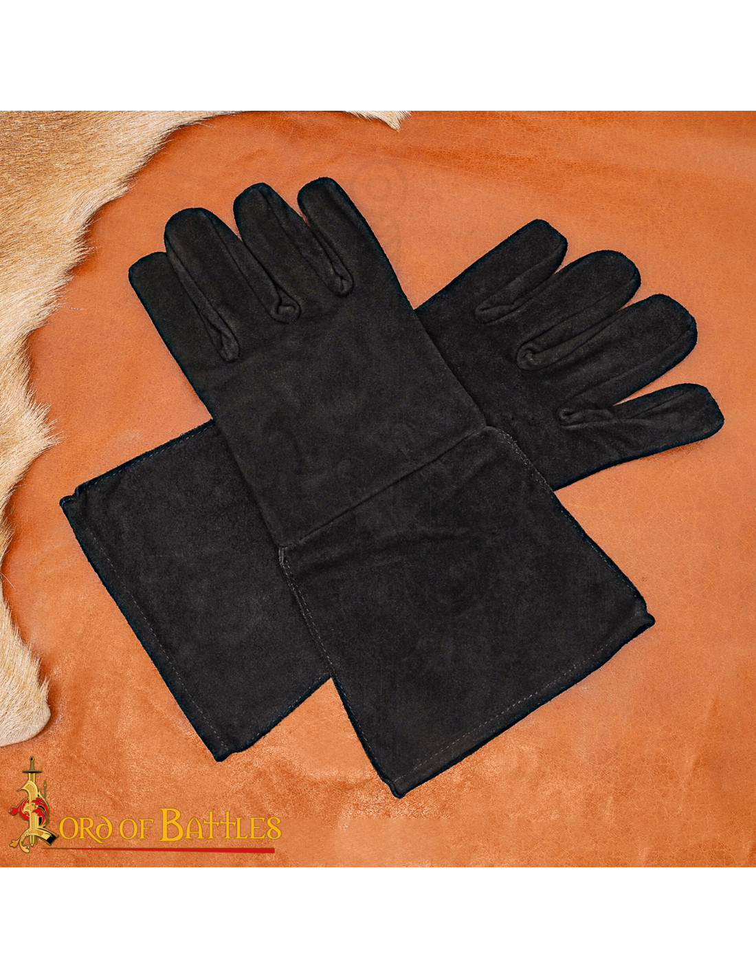 ¿Buscas protección con estilo y autenticidad? Estos guantes medievales en piel de ante negro te permiten revivir épocas pasadas con un toque de elegancia y funcionalidad. Con su diseño clásico, cubren además las muñecas y parte de los antebrazos gracias a sus largos puños, brindando una defensa adicional al manipular armas, armaduras o en recreaciones históricas.
