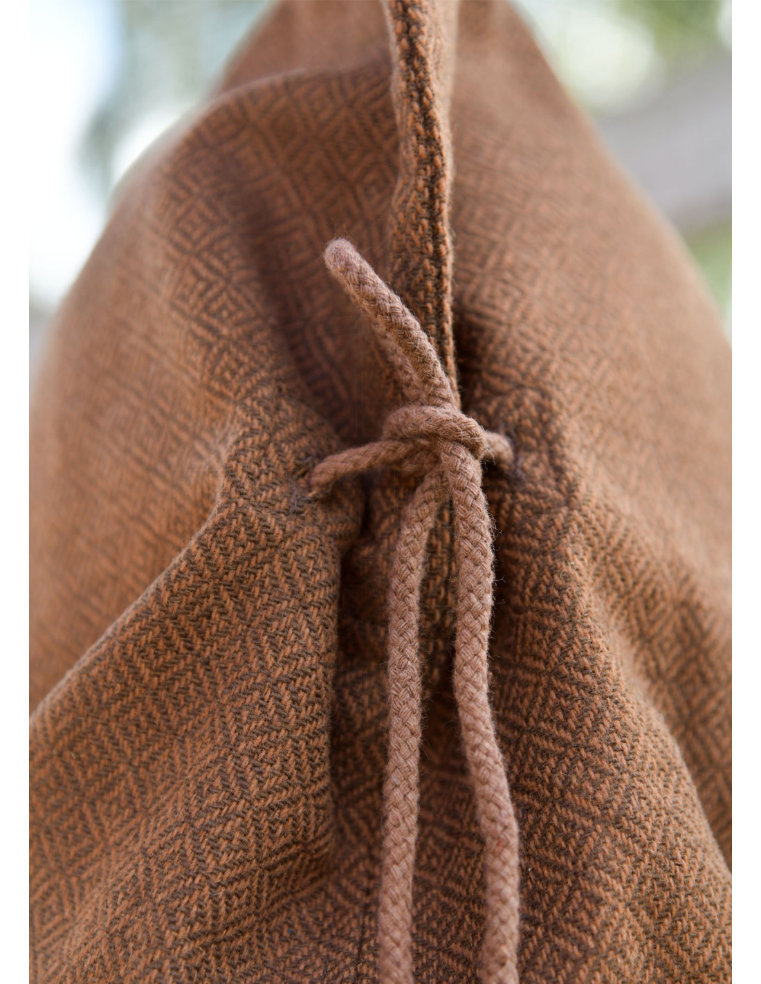 Esta capucha de lana marrón transforma esa idea en realidad, ofreciendo una comodidad natural que te protege del viento y mantiene la silueta fiel a épocas antiguas. El tejido en espiga con pequeños rombos aporta una textura visible que enriquece cualquier túnica o capa, mientras que el remate en contraste realza los contornos con un acabado elegante, perfecto para quien busca autenticidad sin renunciar al estilo.