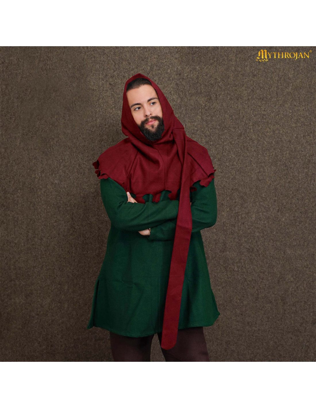 Perfecto para recreación histórica, LARP, teatro o fotografía de época, el Gugel medieval en lana modelo Liripipe, color rojo, es una pieza que transforma cualquier atuendo en una declaración de estilo y autenticidad.