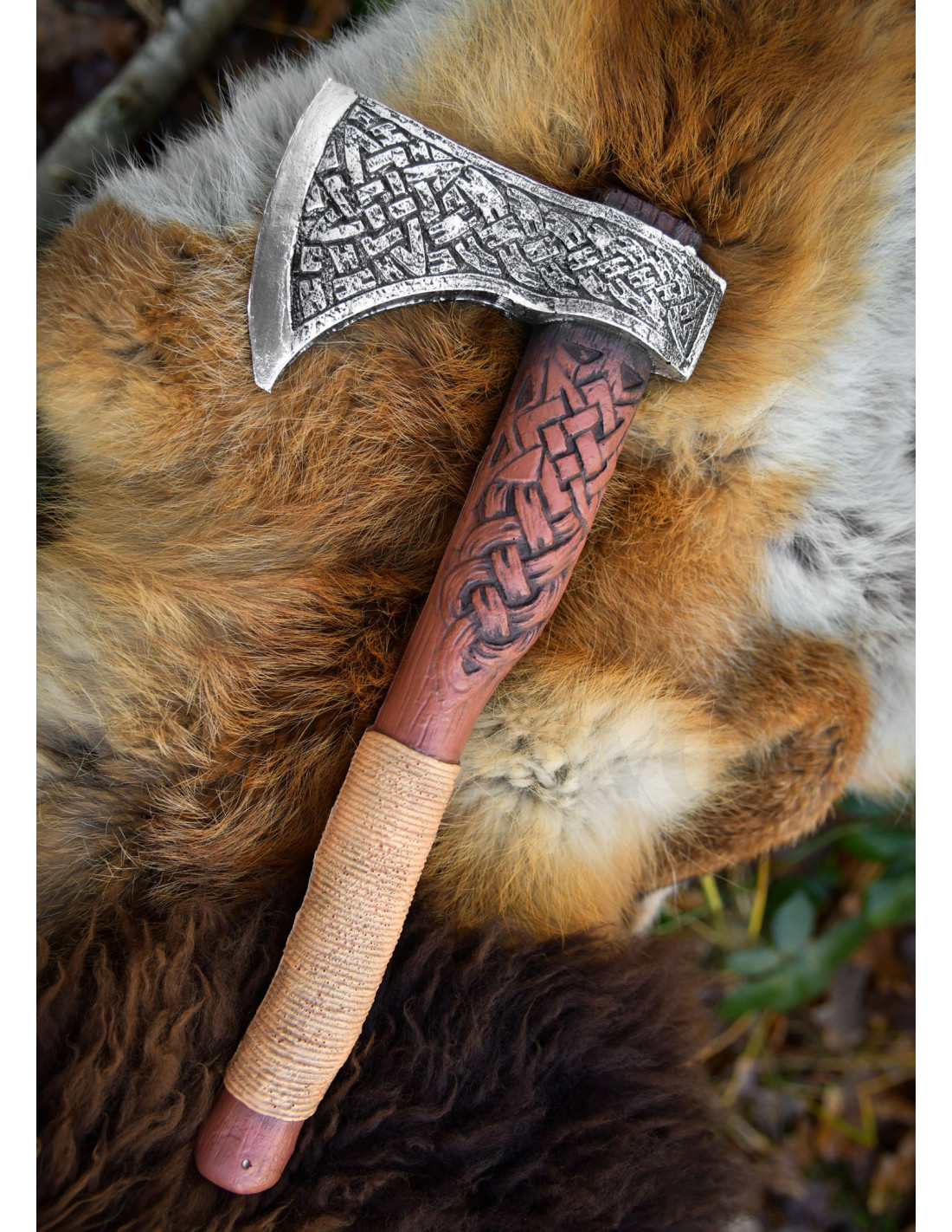 Diseñada para encajar en múltiples roles, desde el Jarl que impone respeto, hasta la shieldmaiden que protege a su clan, o el guerrero que busca gloria, Ulfric refleja la estética vikinga con detalles que conectan directamente con la iconografía nórdica, como los nudos y relieves que recuerdan los símbolos de clan y las sagas antiguas. Esa conexión sutil hace que el arma no solo complemente tu disfraz, sino que amplifique la historia que quieres contar.