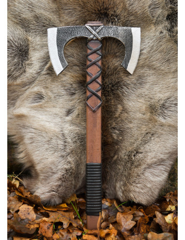 Esta hacha te conecta con ese espíritu guerrero sin sacrificar comodidad en largas jornadas de juego. Su cabezal de doble filo equilibrado ofrece una sensación de manejo firme y predecible, ideal para movimientos fluidos y choques controlados durante combates intensos o coreografías escénicas.