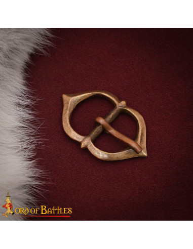 Fabricada mediante el método tradicional de fundición a la cera perdida, cada hebilla captura con precisión cada línea y curva, destacando su elegante marco en forma de hoja y su pin que se estrecha con elegancia. Su acabado en bronce natural o antique bronze aporta una estética rústica y duradera, perfecta para complementar atuendos históricos o de fantasía.