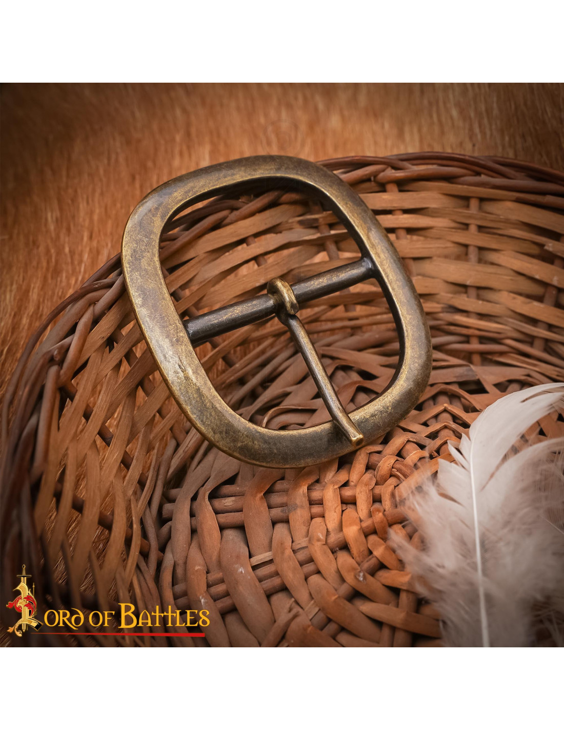 El aspecto rugoso y mate, con texturas que imitan el desgaste histórico, añade autenticidad visual, logrando ese equilibrio entre elegancia y fuerza medieval que funciona en trajes de época, productos de artesanía en cuero y atuendos LARP. Si buscas comprar Hebilla medieval ovalada en latón envejecido, aquí tienes una opción que une estética tradicional y uso diario.