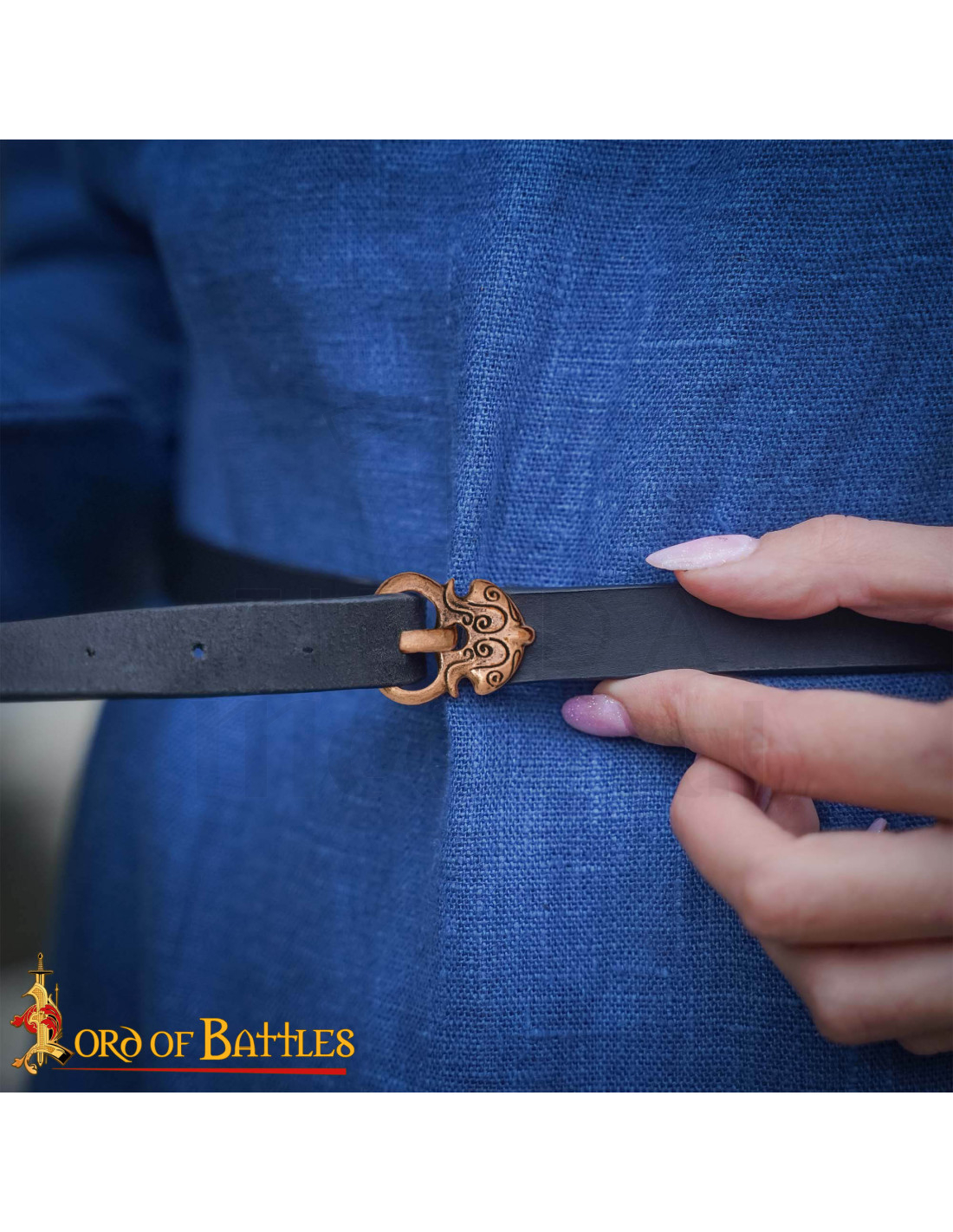 Cada pieza nace de una técnica ancestral de fundición, lo que se traduce en relieves nítidos y pequeñas variaciones que hacen que ninguna hebilla sea igual a otra, ofreciéndote autenticidad y personalidad real. Los motivos en espiral y la silueta asimétrica remiten a artesanía nórdica de los siglos IX al XI, un guiño sutil a tradiciones guerreras y comerciales que añade valor simbólico a tu atuendo.