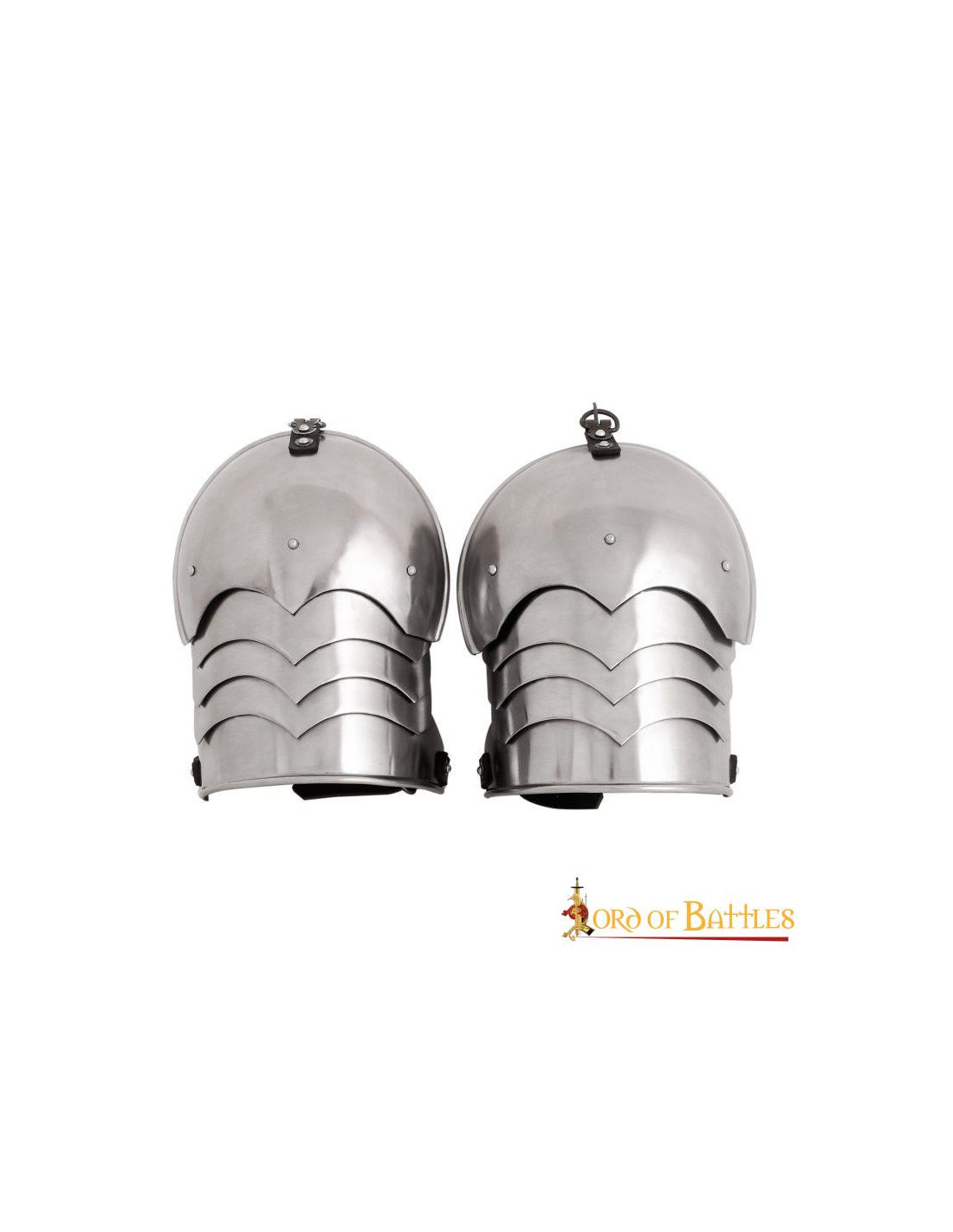 Además, nuestras hombreras cuentan con hebillas centrales de acero resistente que se pueden anclar fácilmente a las correas de cuero de un gorjal o coraza. De esta manera, podrás ajustarlas de manera segura y personalizada, asegurando una protección óptima en cada batalla.