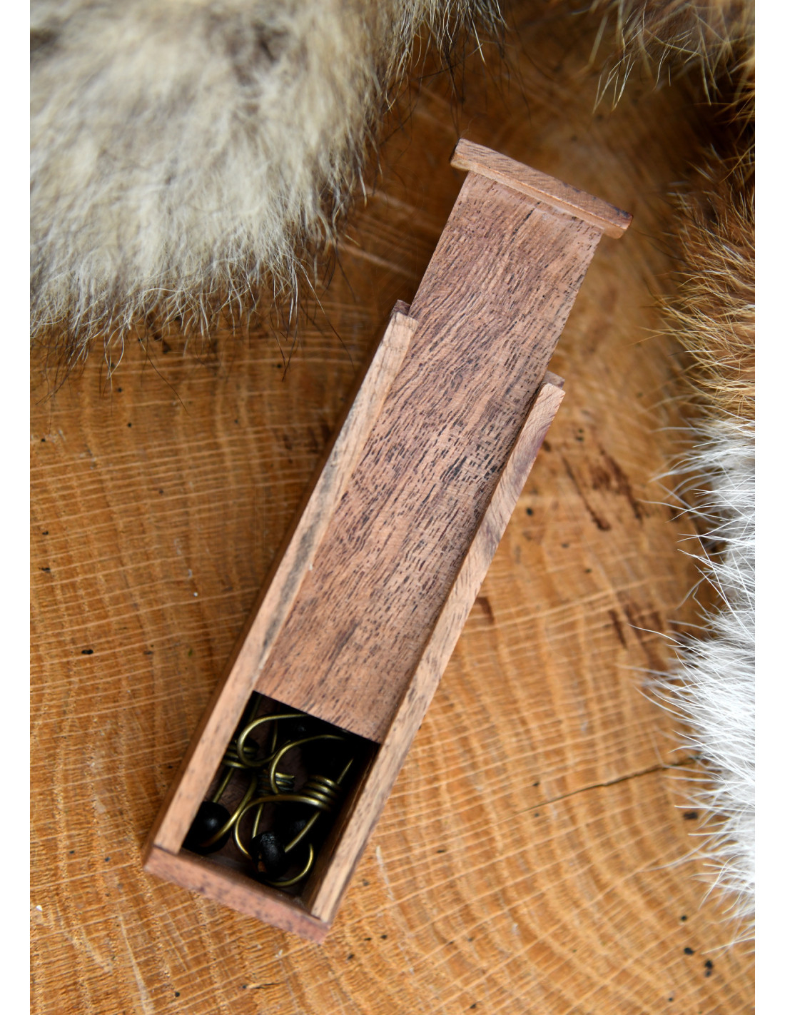 Recuerda que, al ser un producto de madera natural, cada pieza puede presentar variaciones en color y textura, lo que la hace aún más especial. No solo adquieres un objeto funcional, sino también una historia que contar. Dale a tus pertenencias el hogar que merecen y transforma tu espacio con esta hermosa cajita joyero vikinga-medieval.